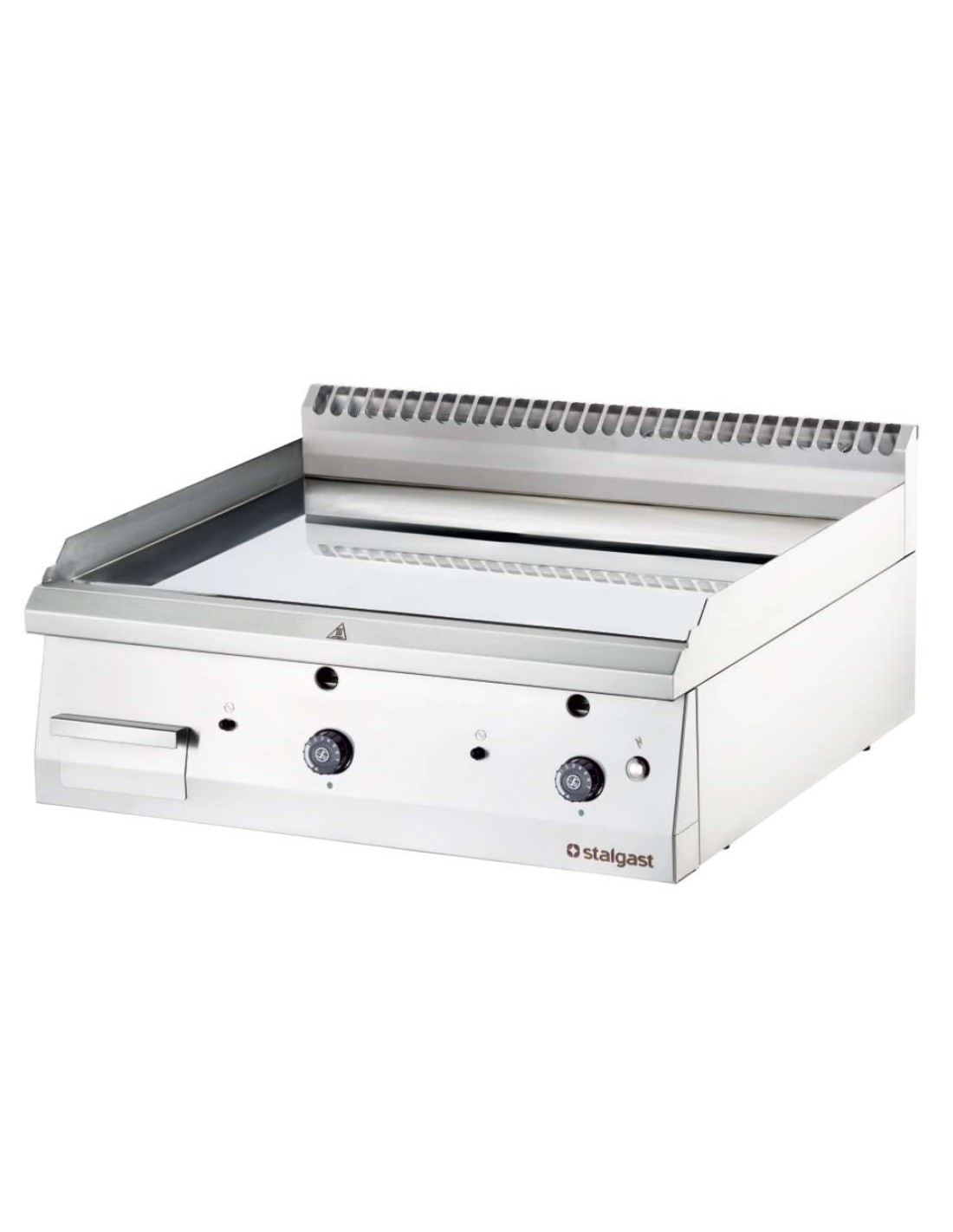 Fry Top a gas de Cromo Duro con placa lisa,fabricada en acero inoxidable, con 2 zonas de trabajo independiente y recogegrasas. Temperatura de trabajo hasta 300°C.