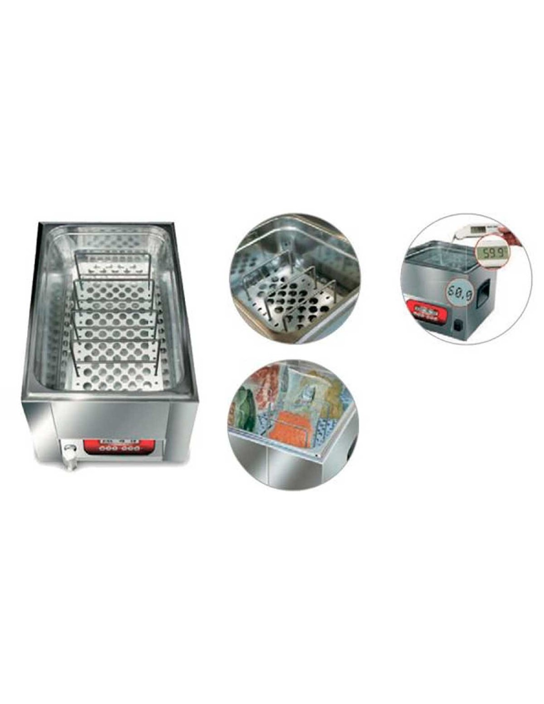 Cocedor sous vide indicado especialmente para una cocción a baja temperatura gracias al control del tiempo y la temperatura, consiguiendo así mantener todos los jugos ,sabores y nutrientes de los alimentos, cosa que no se consigue con la cocción tradicional.