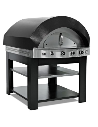 Horno de pizza a gas de acero inoxidable con control de temperatura ajustable manual hasta 400°C y termostato de seguridad.Con la base de la cámara de piedra refractaria rectangular.Consultar plazo de entrega.