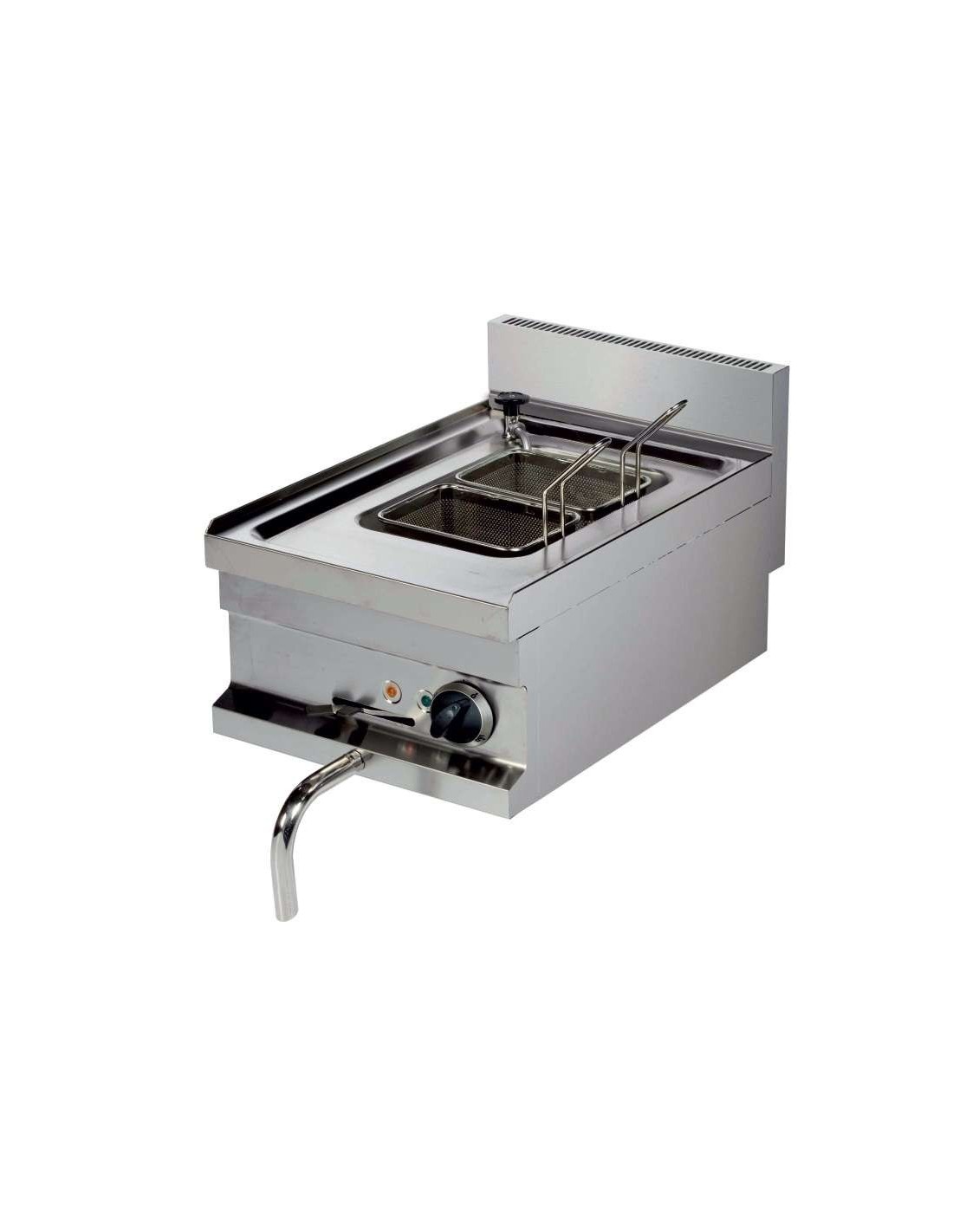Cocedor de pasta eléctrico de sobremesa de 14 litros dde capacidad con una potencia de 3 kw y medidas 400x600x265h mm