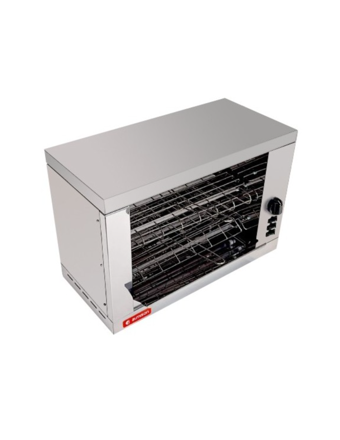 Fry Top a gas de sobremesa de acero rectificado. La válvula de gas dispone de un control de llama alta/baja y dispositivo de seguridad anti fallo de llama. También dispone de cajón recogegrasas