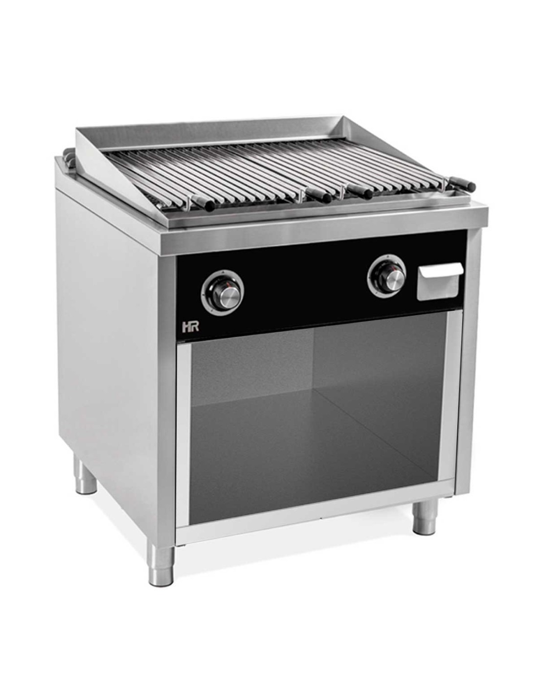 Barbacoa a gas Fainca HR Serie 750 con parrilla en V, briquetas cerámicas, quemadores inox, cajón recoge grasa y estructura en AISI 304. Disponible en 40, 60 y 80 cm, con potencias de 8,7 a 17,4 kW y hasta 2 quemadores. Ideal para cocinas profesionales de alto rendimiento.