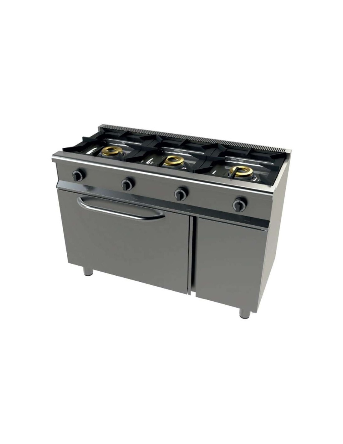 Cocina a gas con horno fabricada en acero inoxidable con parrillas de hierro fundido y quemador con válvula de seguridad termopar. Vienen preparados para GAS BUTTANO-PROPANO y se proporcionan inyectores para gas natural