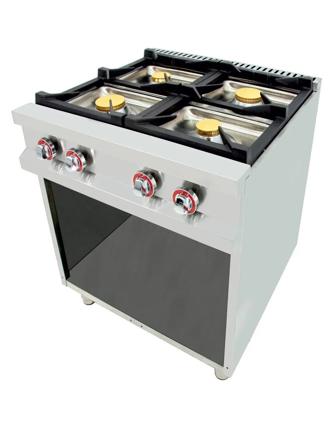 Cocina a gas profesional Arilex 80CG70 con 4 quemadores y 26 kW de potencia. Sistema EASY de mantenimiento sin herramientas y estructura en acero inoxidable.