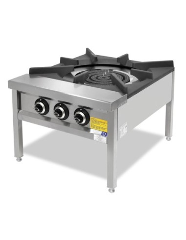 Paellero Industrial a Gas de 31 kW de potencia, con 3 quemadores y estructura de acero inoxidable.diseñado para uso de ollas de gran capacidad y paelleros de grandes dimensiones.