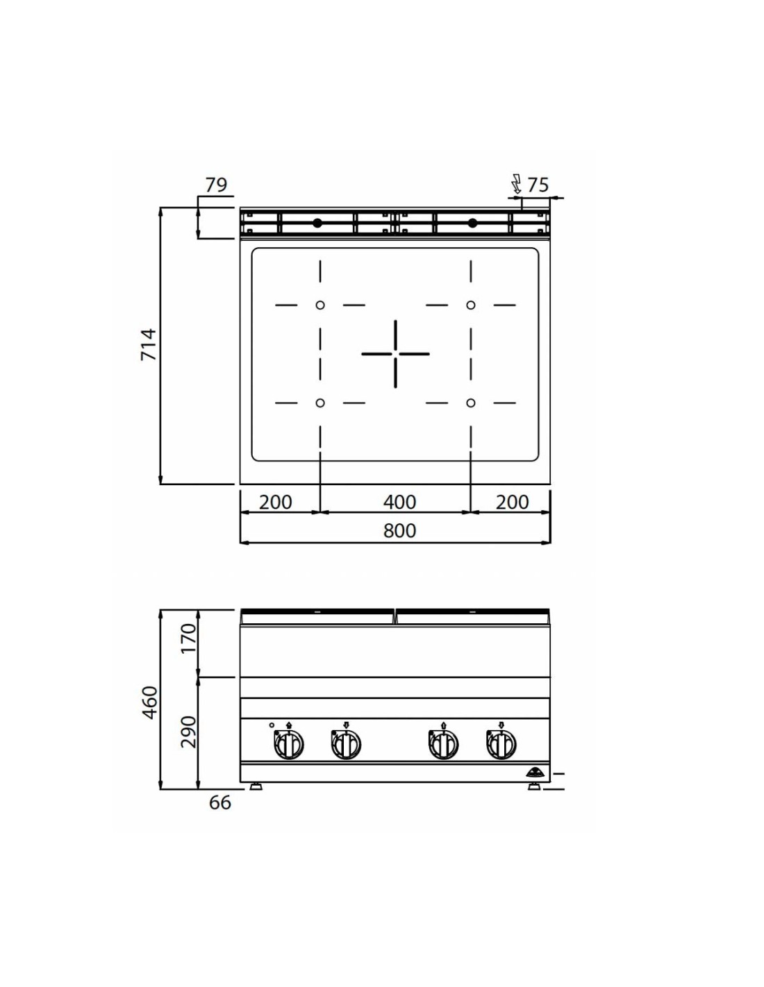 Este modelo pertenece a la línea Plus Macros 700, una gama de cocción compacta con 71,4 cm de profundidad, desarrollada para chefs y profesionales que necesitan soluciones técnicas avanzadas sin renunciar a la optimización del espacio. Su diseño de sobremesa con 4 zonas de cocción proporciona una gran capacidad de trabajo en un formato reducido.