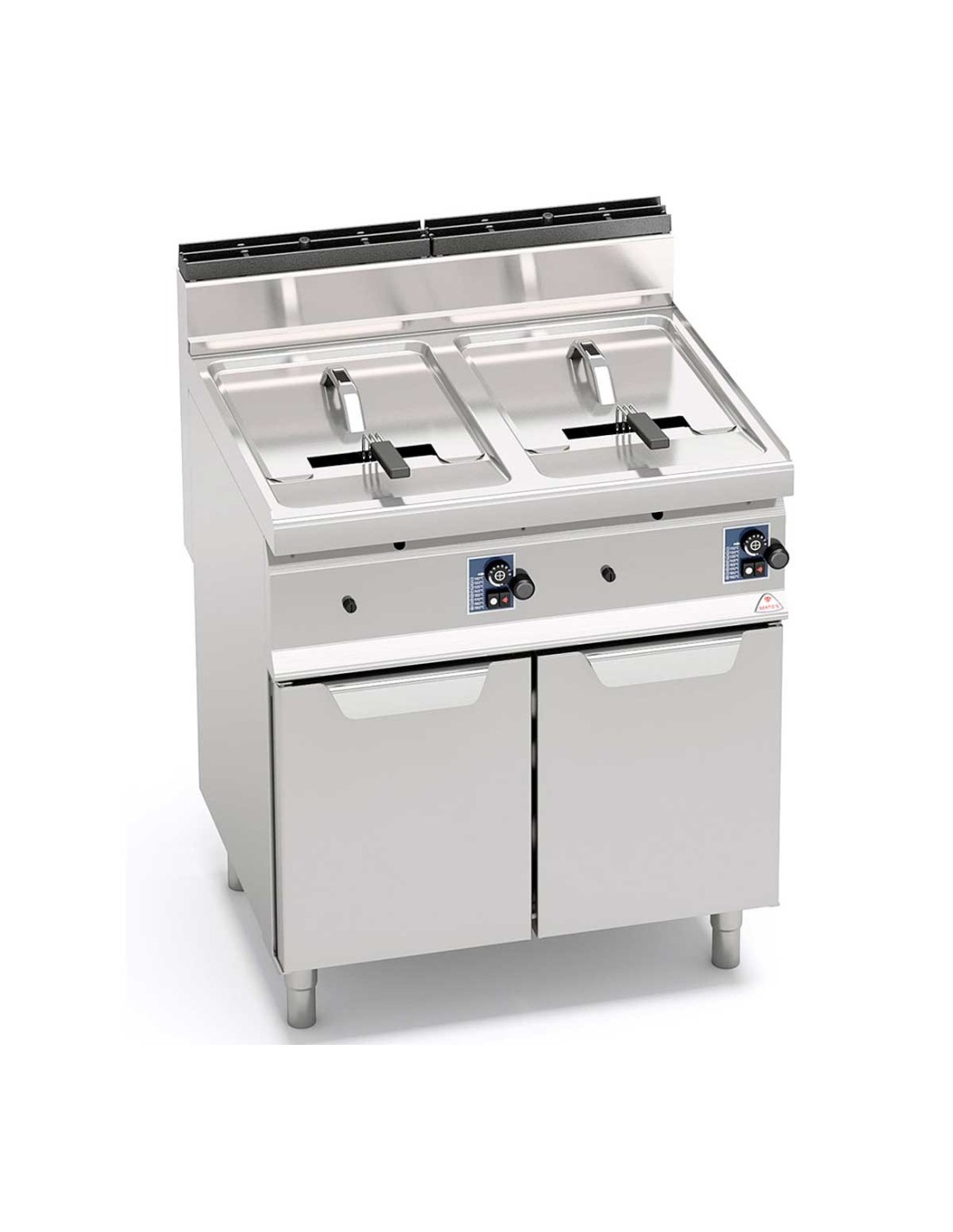 Freidora a gas profesional Bertos Macros 700 Turbo con mueble, doble cuba independiente de hasta 20+20 litros, potencia máxima de 33 kW y producción de hasta 50 kg/h. Ideal para cocinas industriales de alto rendimiento.