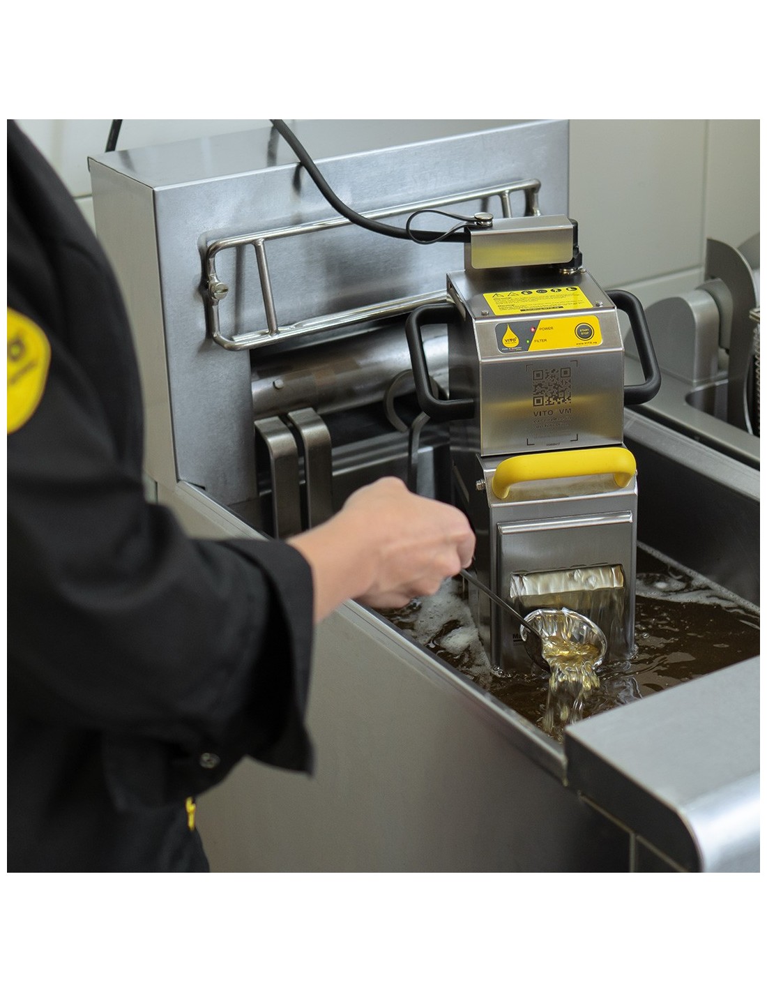 Con un peso inferior a 8 kg, el VITO VM es compacto, fácil de manipular y se integra perfectamente en cualquier cocina. Su filtración diaria permite ahorrar hasta un 50% en el consumo de aceite, reducir el trabajo de limpieza y mejorar la seguridad laboral.