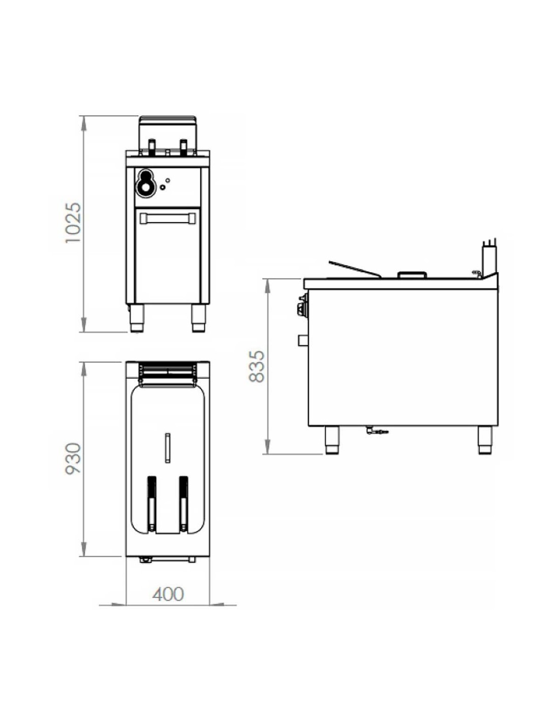 Pertenece a la Serie 900 modular, con encimera de acero inoxidable AISI 304 de 2 mm y cuba embutida de gran capacidad, optimizada para fritura de alto volumen con recuperación térmica rápida.