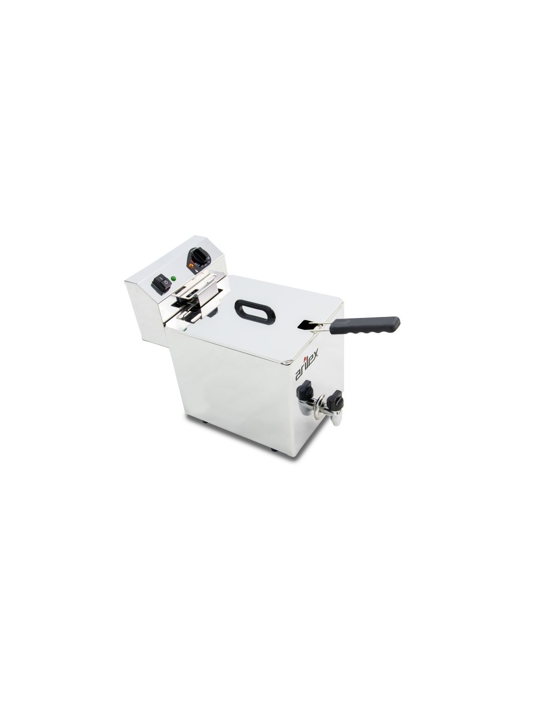 La Freidora Eléctrica EVO10G Arilex de 10 litros es una freidora profesional con grifo de vaciado, zona fría y cuba embutida en acero inoxidable, ideal para hostelería. Ofrece potencia de 3,5 kW, control térmico preciso y fácil limpieza para un uso intensivo.