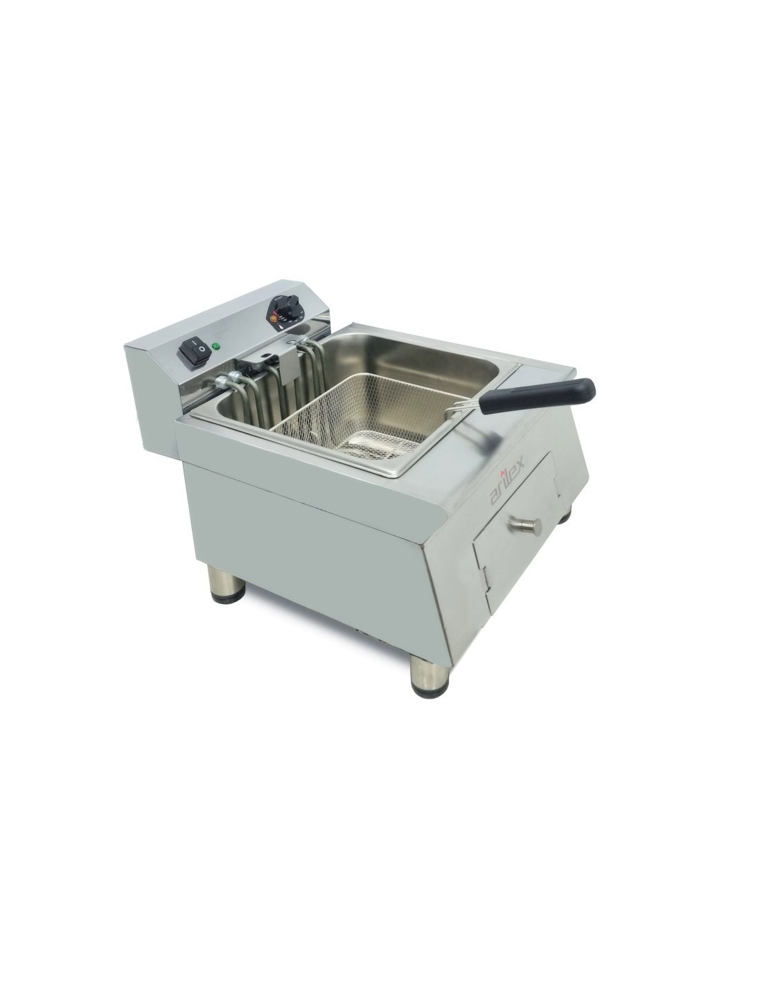 La Freidora Eléctrica Línea 600 Arilex 40FRE12GTR de 12 litros es una freidora profesional compacta y potente, con grifo de vaciado, zona fría y acero inoxidable AISI 304. Con potencia de 7,5 kW y funcionamiento a 400 V, es ideal para cocinas industriales que requieren alto rendimiento en poco espacio.