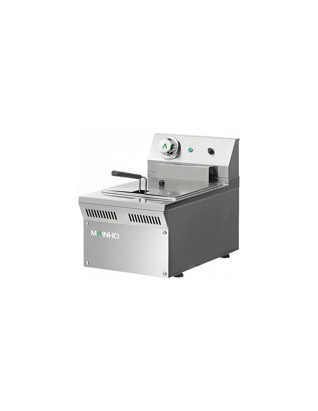 La Freidora Eléctrica Mainho ELF-31 EM de la Serie 500 Eco Line es un equipo compacto, robusto y eficiente, diseñado para cocinas profesionales que requieren un alto rendimiento en espacios reducidos. Su cuba de 8 litros y resistencia blindada extraíble aseguran una fritura rápida y uniforme, mientras que el termostato de trabajo y seguridad garantiza un control preciso de la temperatura.