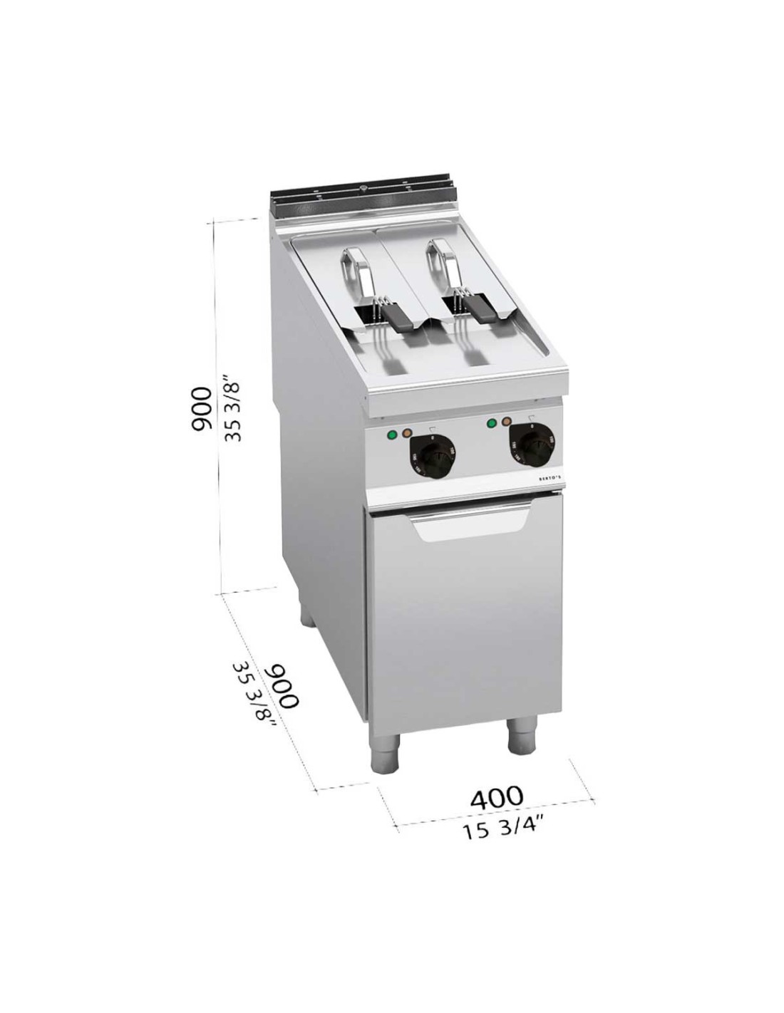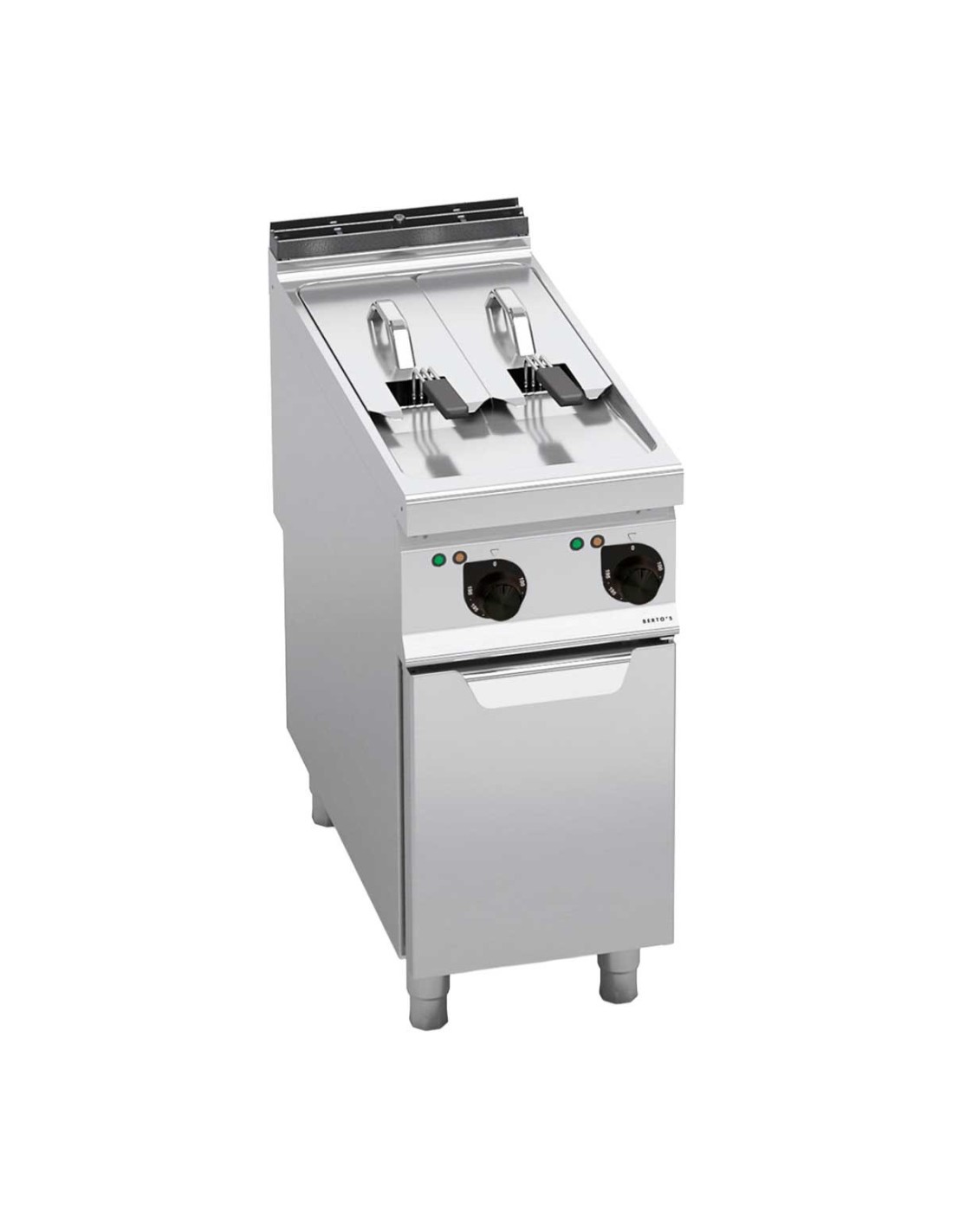 La freidora doble eléctrica Bertos E9F7+7-4M de la Serie Máxima 900 es una solución profesional de alto rendimiento, equipada con dos cubas independientes de 7 litros y una potencia total de 16 kW, ideal para cocinas industriales con alta demanda. Fabricada íntegramente en acero inoxidable AISI 304, garantiza durabilidad, fácil limpieza y máxima higiene. Sus resistencias Incoloy giratorias, el control preciso de temperatura hasta 190 ºC y el ahorro de hasta un 60 % en consumo de aceite la convierten en una freidora eficiente, segura y altamente productiva para restaurantes, hoteles y colectividades.