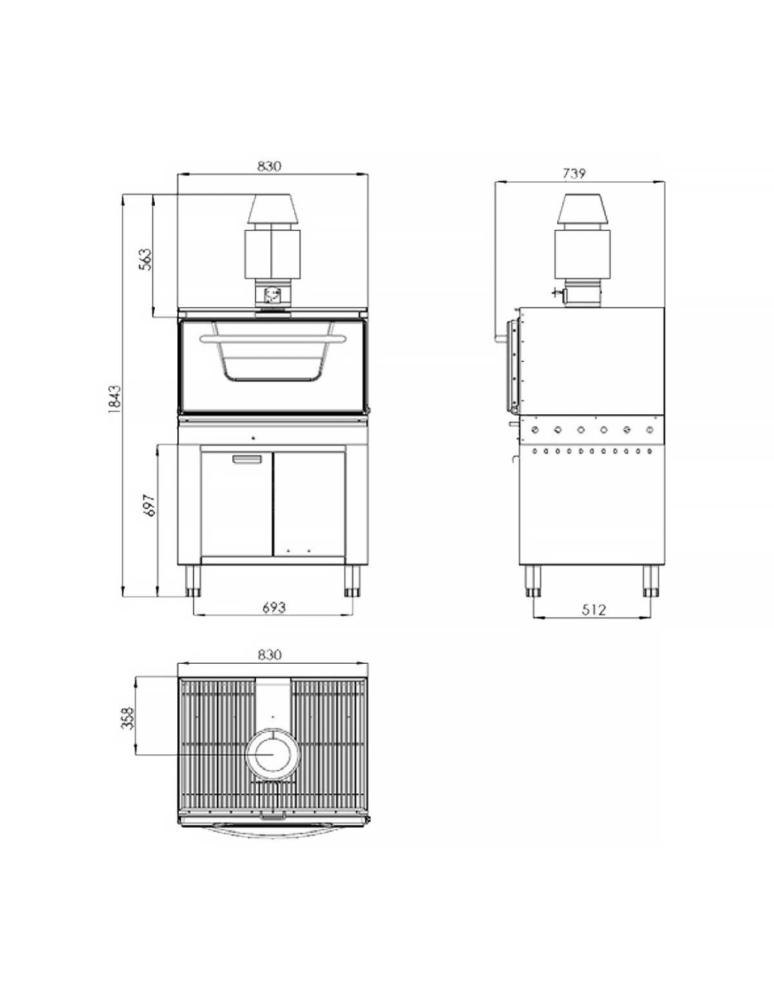 Cajón recoge cenizas inferior, extraíble para facilitar la limpieza.