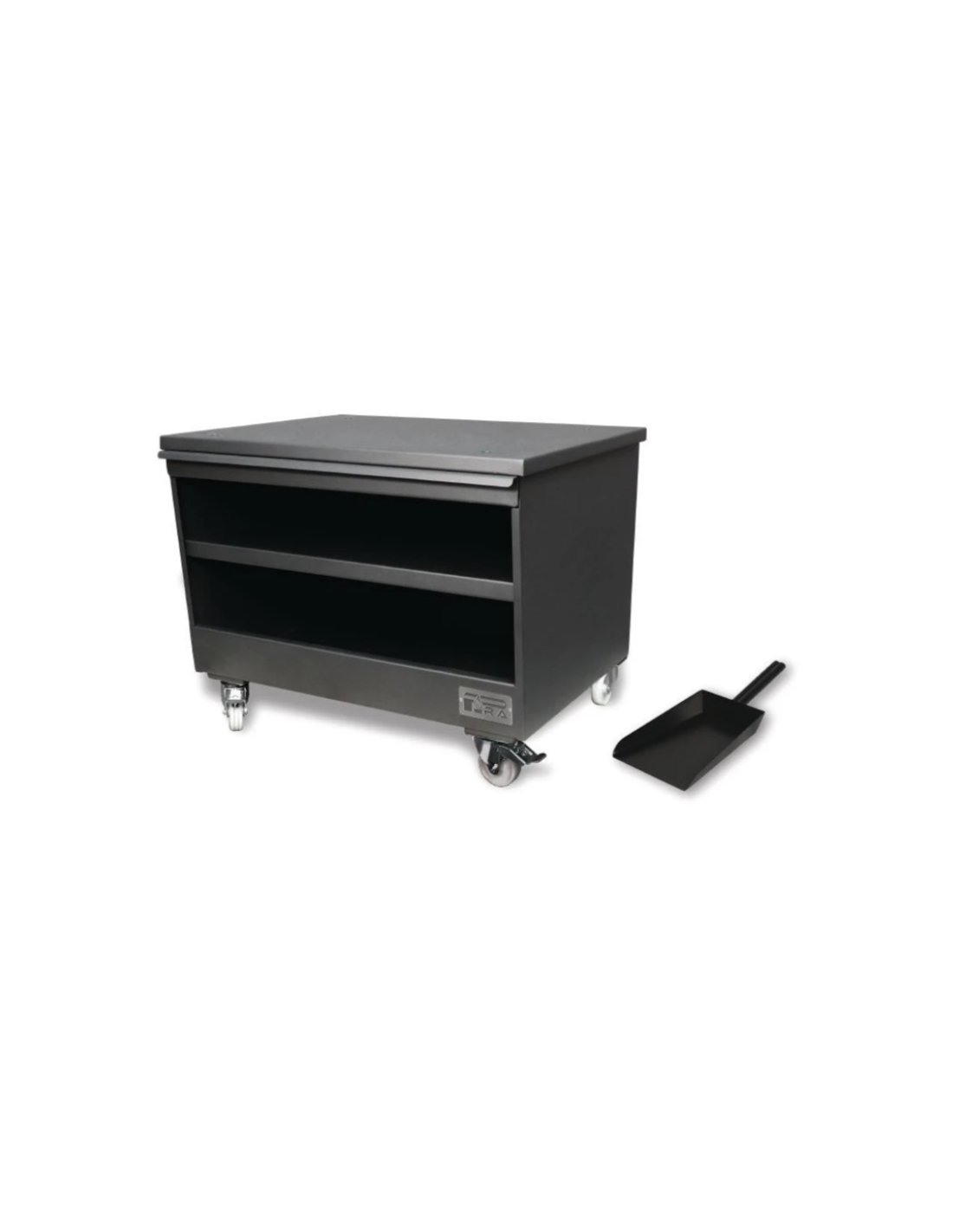 Lux: Construida en acero con acabado epoxi color negro. Totalmente soldada que le confiere una gran robustez. Base superior y dos estantes inferiores para el almacenamiento del carbón. Cajón superior que nos puede servir de mesa apoyo o bien para guardar tijera o pala atizadora. Facilidad en su movilidad gracias a sus cuatro ruedas, dos de ellas con freno. Posee de dotación pala para carbón de acero con acabado epoxi color negro. Producto fabricado en UE.