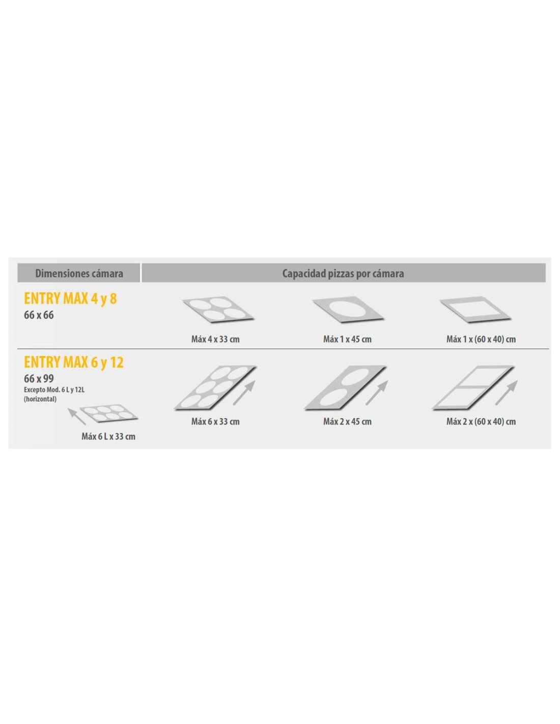 Capacidad total: 12 pizzas de Ø 33 cm