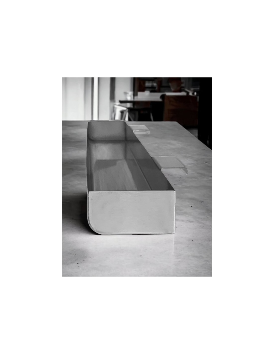 Mueble en acero inoxidable con aristas redondeadas.