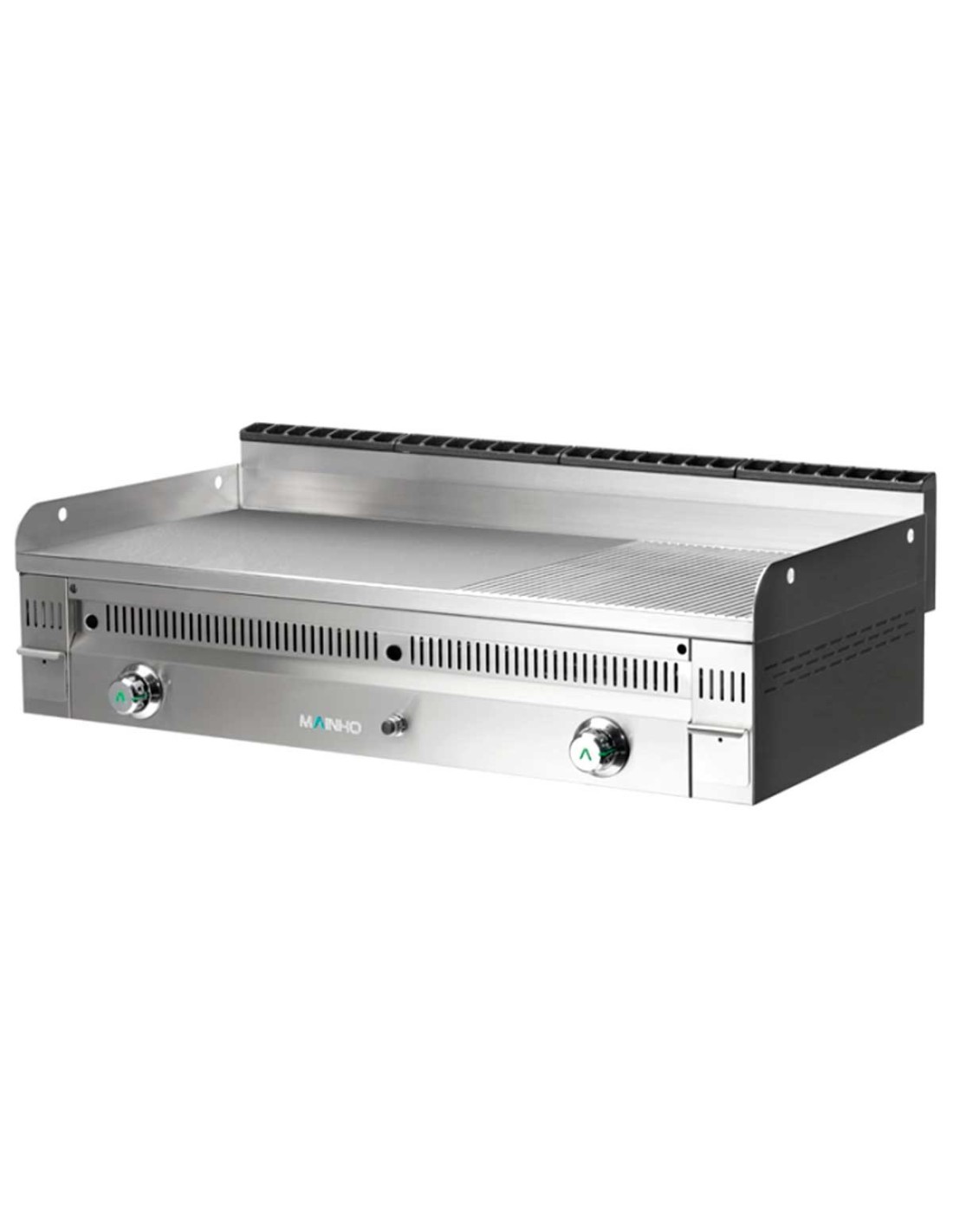 Su placa está fabricada en acero rectificado de 20 mm de espesor, con zona lisa y ranurada, lo que permite trabajar diferentes tipos de alimentos en una misma superficie.