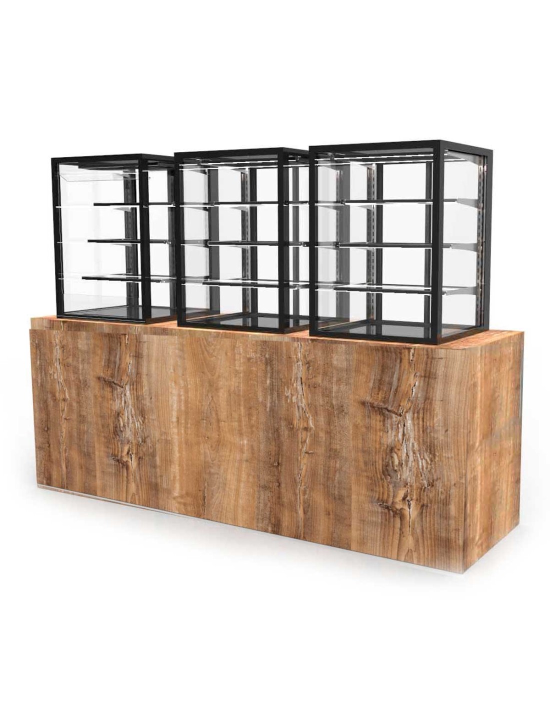 La vitrina neutra 100-50N SAYL (modelo Integra / Drop-In) es un expositor compacto y elegante ideal para hostelería y comercios, con las 4 caras de cristal , con tres estantes regulables con led ,ideal para la exposición y venta de cualquier tipo de producto NO refrigerado.