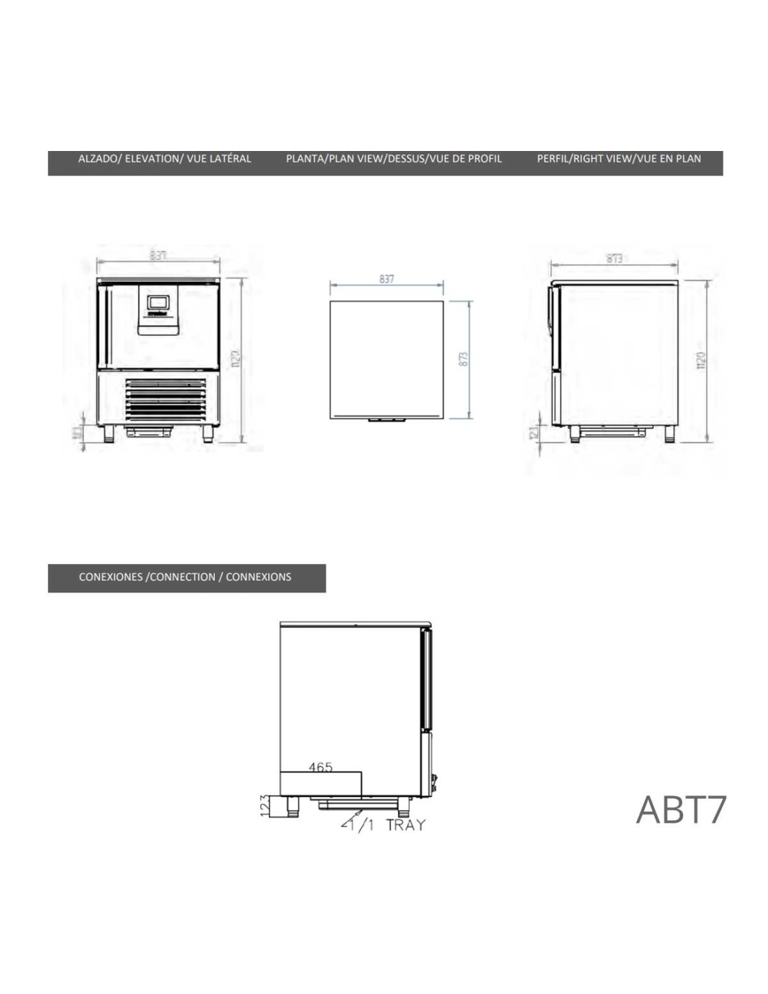 El Abatidor de Temperatura ABT7-1L de Infrico destaca por su diseño elegante y su avanzada gestión de ciclos de abatimiento y sobrecongelación, tanto por temperatura como por tiempo. Esta gama está disponible en varios tamaños y es compatible con bandejas GN 1/1 o 60×40 cm, con entrada transversal (bandejas no incluidas).