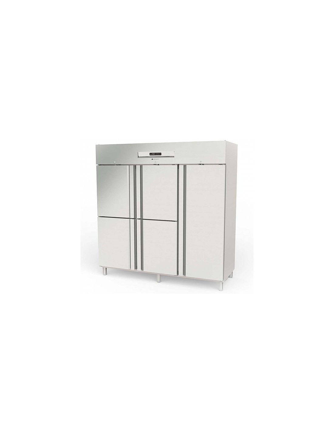 Armario Refrigerado Coreco AGR-2005 GN 2/1 de 2.197 L con 1 puerta completa y 4 medias puertas, control digital, LED, frío ventilado y aislamiento de 75 mm. Incluye 9 parrillas GN 2/1, trabaja de –2 a +8 ºC y usa R290. Ideal para cocinas profesionales.