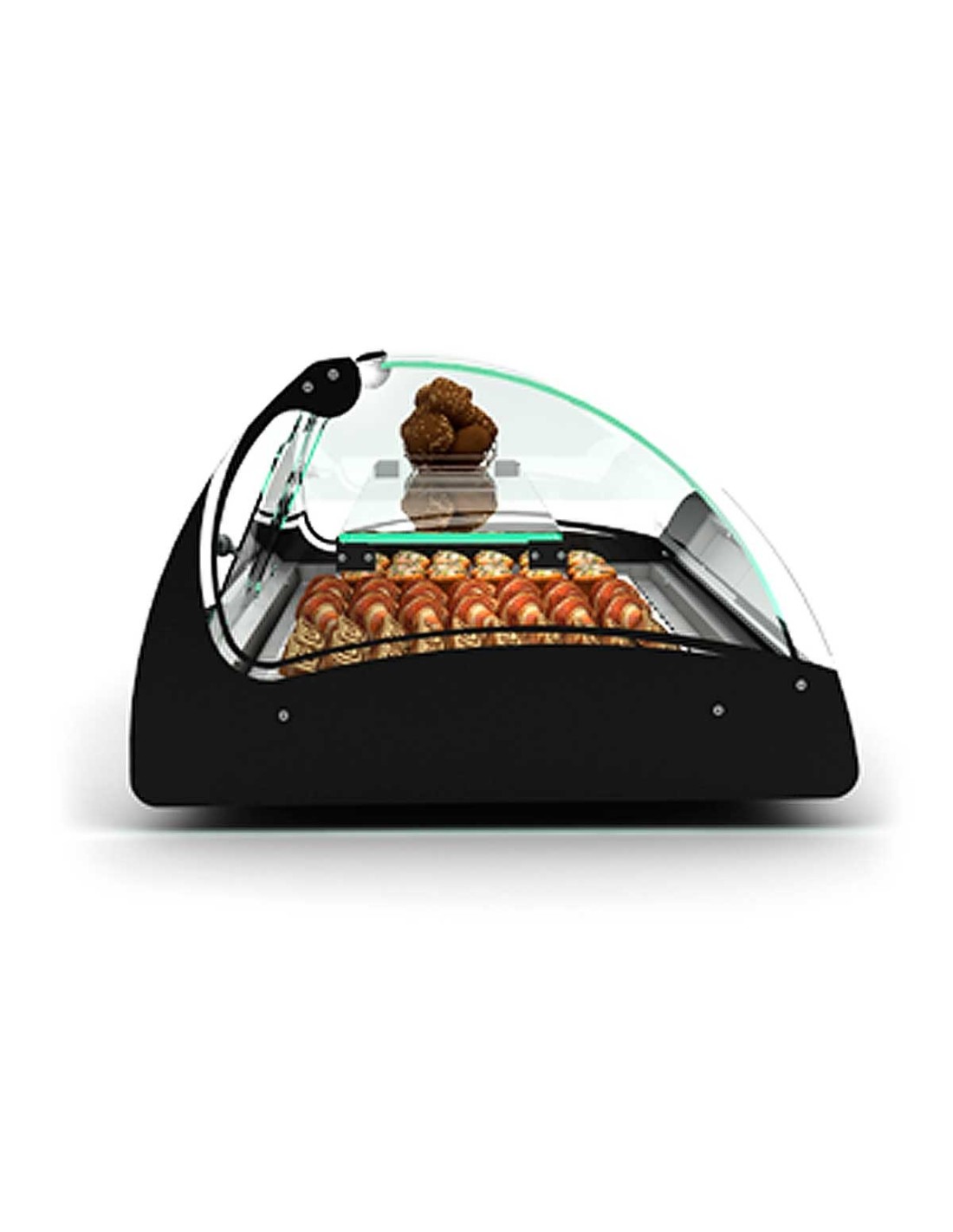 Su diseño con cristal curvo templado abatible, interior desmontable y control digital permite una fácil limpieza y un uso cómodo y seguro en el día a día. El calentamiento mediante baño maría asegura una distribución uniforme de la temperatura, manteniendo los alimentos siempre listos para servir.