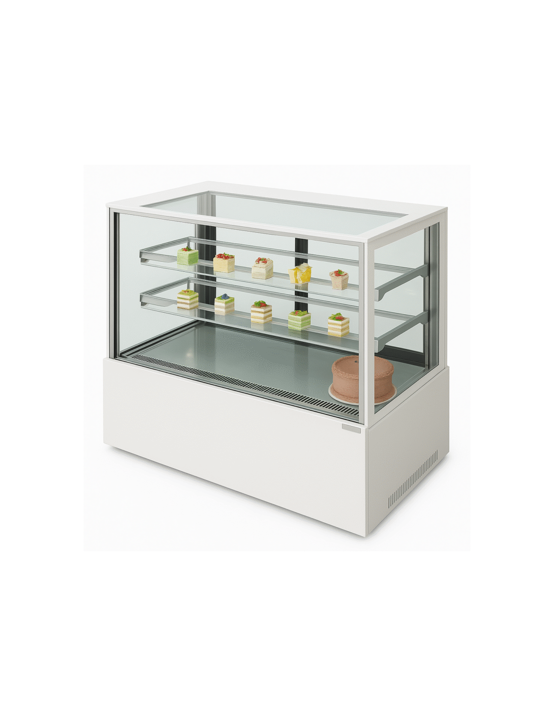 Es la opción ideal para pastelerías, cafeterías, panaderías y negocios de hostelería que buscan una exposición elegante, higiénica y de alto rendimiento para sus productos.
