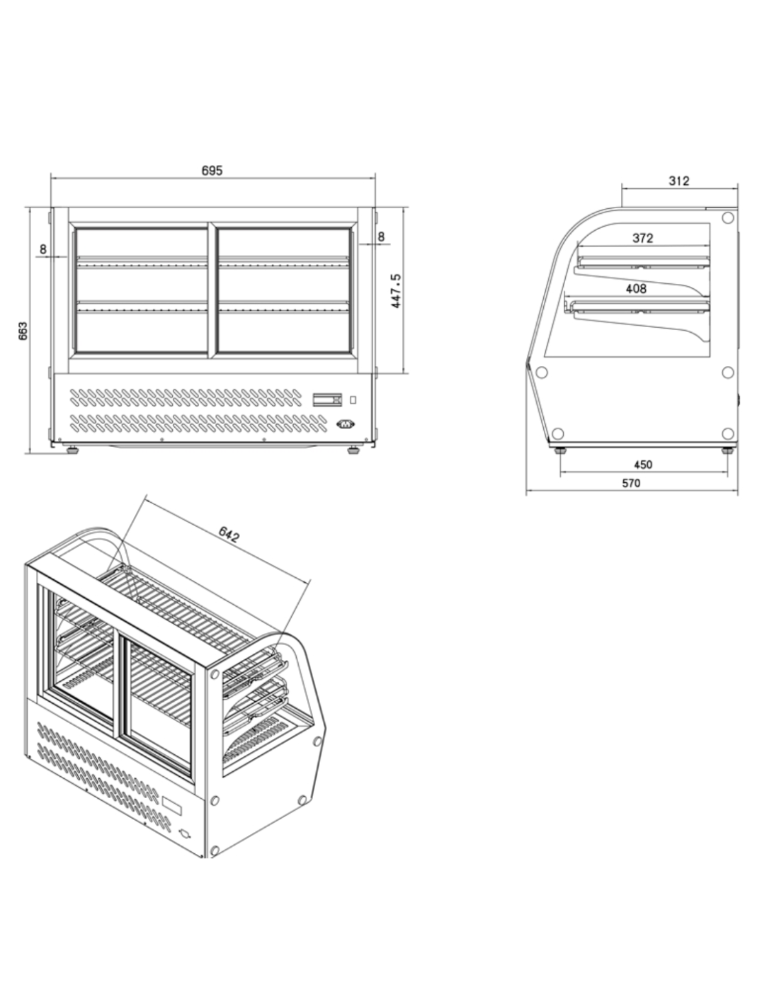 Gracias a la geometría interior y al sistema de refrigeración ventilada, el frío se distribuye de forma uniforme por todos los niveles de exposición, manteniendo una temperatura homogénea entre 3 y 8 °C. Esto garantiza que los alimentos se conserven en perfectas condiciones y listos para su consumo.