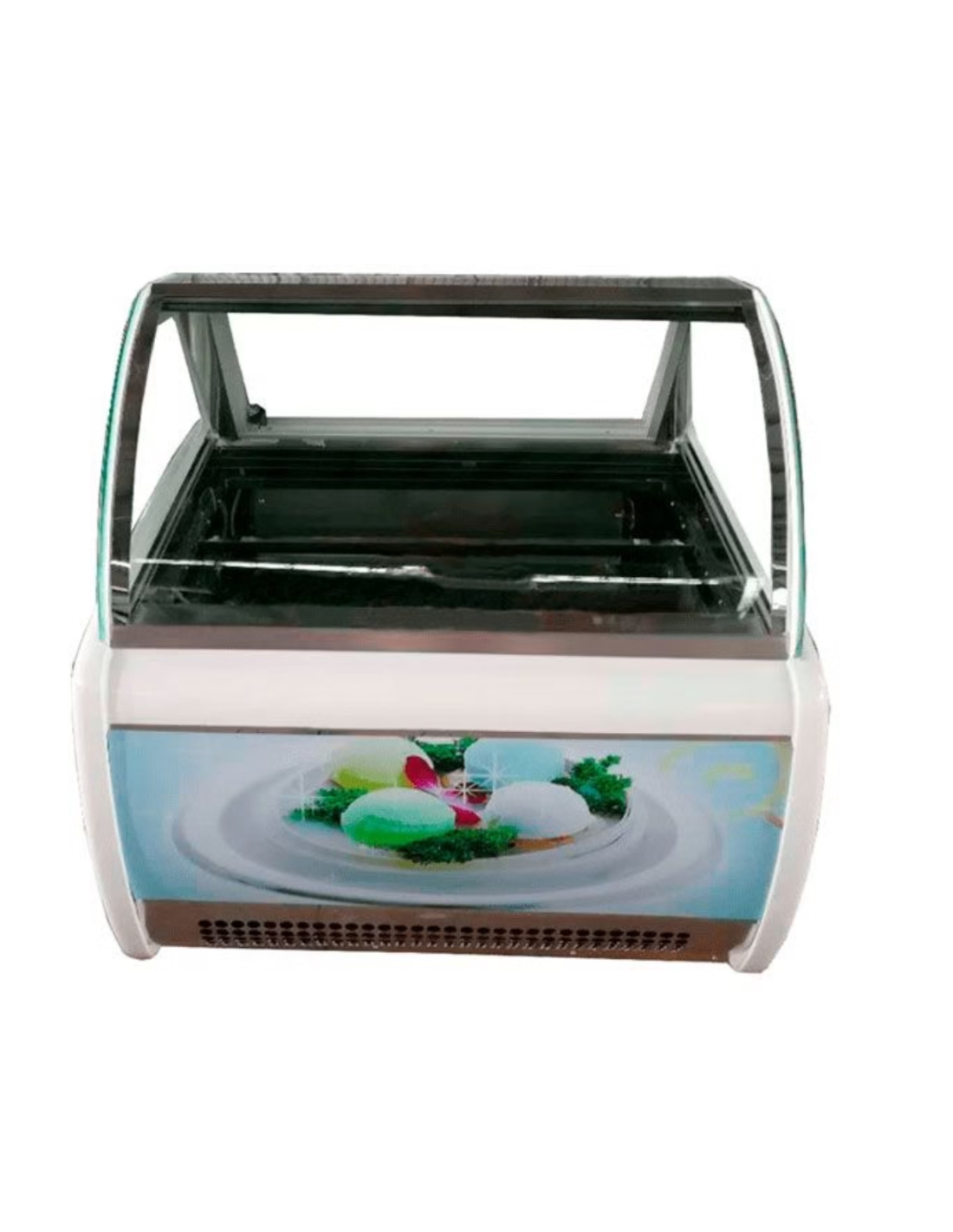 • Construida con materiales de alta calidad y equipada con tecnología de refrigeración de última generación, esta vitrina de helado garantiza mantener tus productos en condiciones óptimas, resaltando su sabor y textura de manera excepcional.