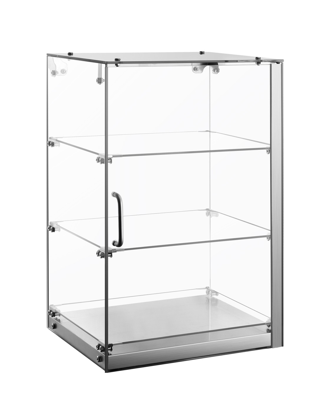 Vitrina expositora de sobremesa neutra, ideal para exponer bollería, bocadillos, sándwiches.Fabricada en cristal templado con perfilería en aluminio anodizado, con puertas abatibles.