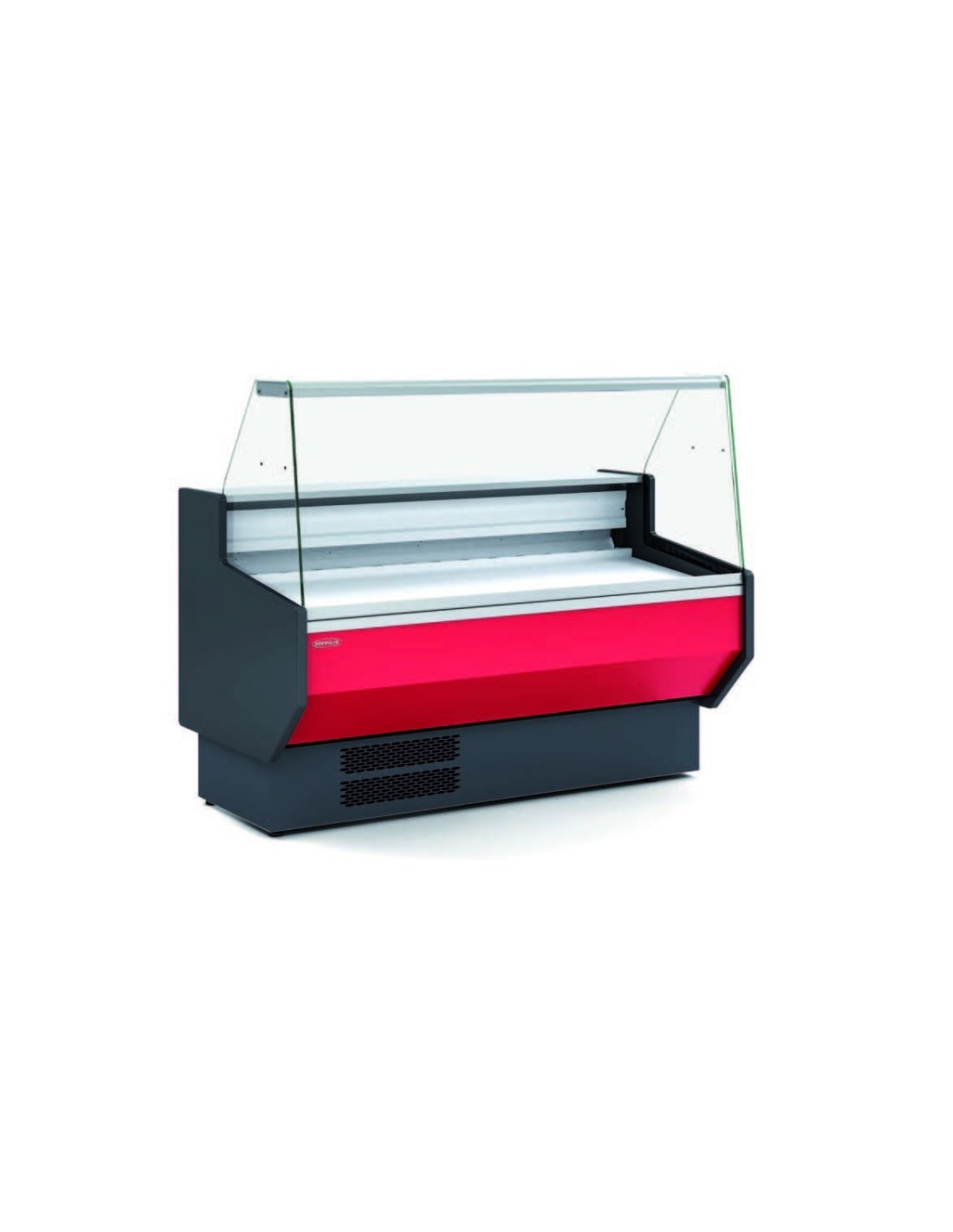 Vitrina expositora refrigerada de frio ventilado en exposición y reserva asegurando así, un frío homogéneo en toda la vitrina, es ideal para carnicería y charcutería.Con estructura superior en vidrio templado panorámico recto y Control automático de temperatura y del desescarche.Disponible en medidas de 1025 mm a 2945 mm.