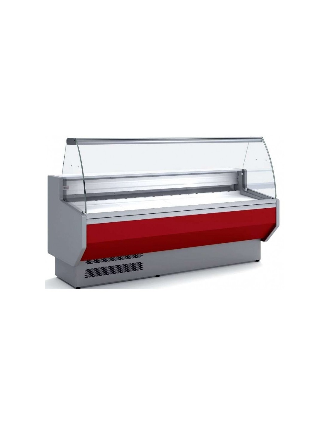 Vitrina refrigerada de pastelería con cristal curvo,ideal para la exposición y venta de forma segura y eficiente, con reserva refrigerada con puertas.OPCIONAL el cierre Plexi trasero y estante de cristal intermedio consultar precio.
