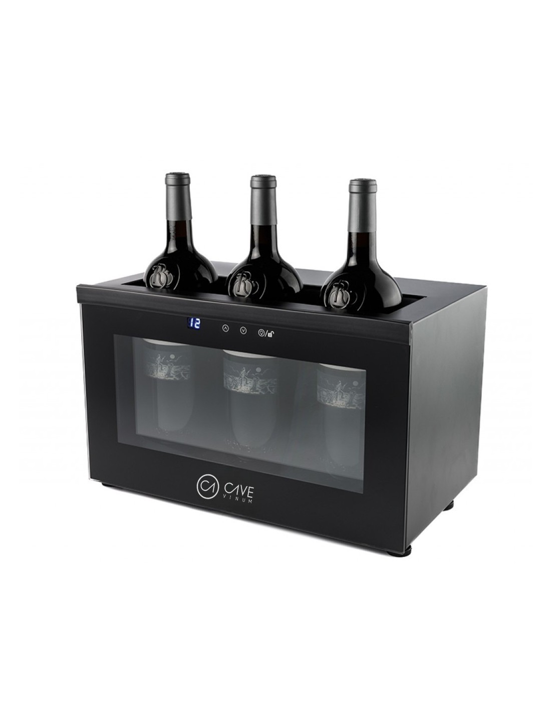 Expositor de vino para barra para exponer y mantener hasta 3 botellas de vino de 75cl.Temperatura: +12 /+18 º C.Con Control de temperatura electrónico e indicador LED.