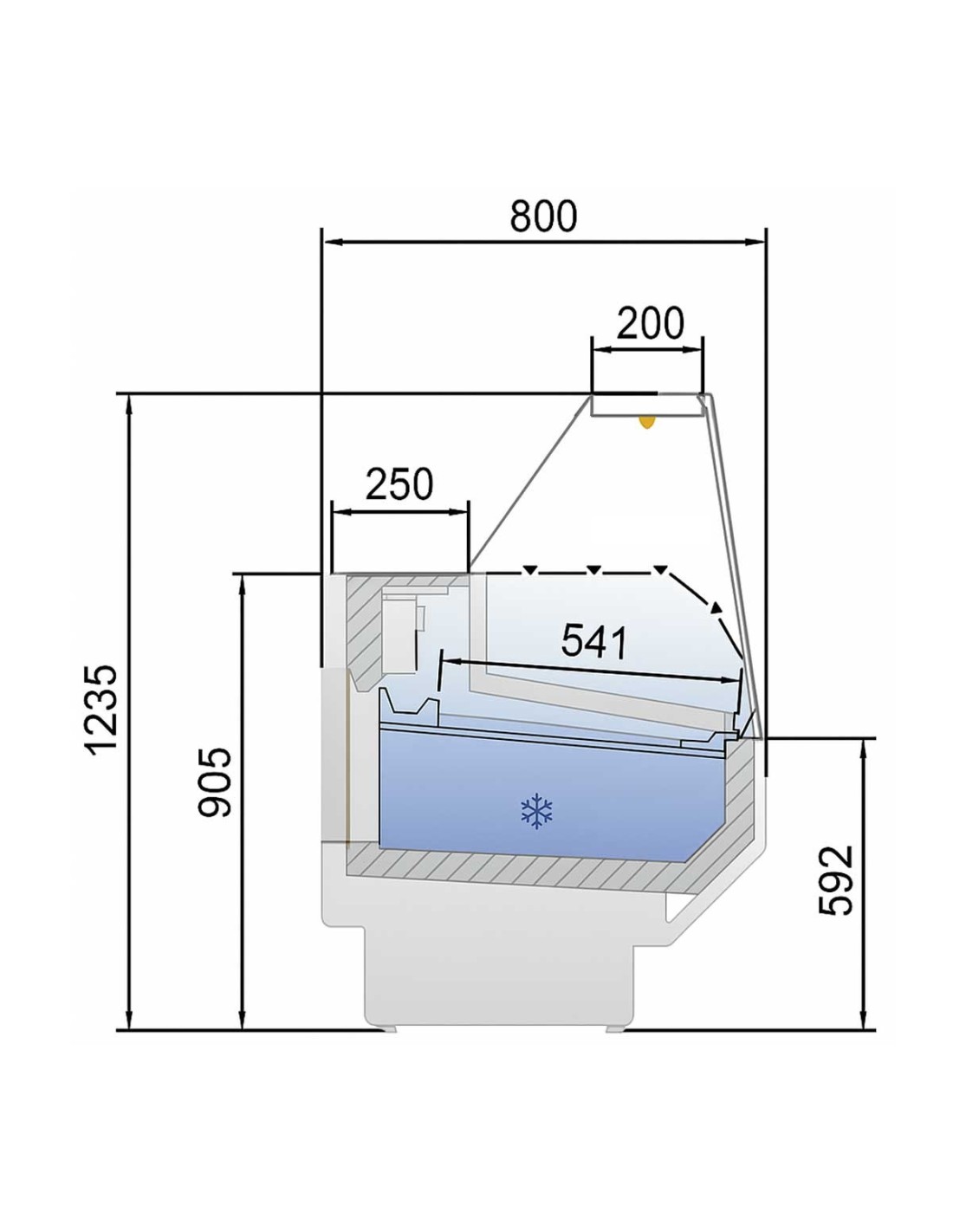 Su diseño robusto, junto con acabados de alta calidad, garantiza una larga vida útil y una integración armoniosa en distintos entornos comerciales. El cristal recto securizado y la iluminación LED superior realzan el producto expuesto, favoreciendo la venta directa.