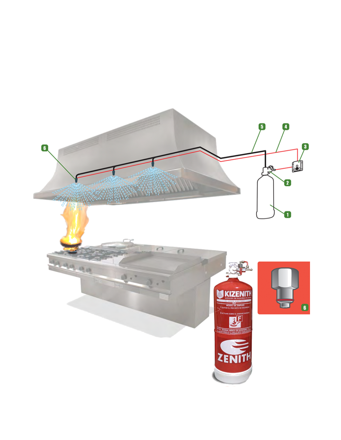 Sistema Contra Incendios Kizenith Para Campanas de 1000 a 3000 mm