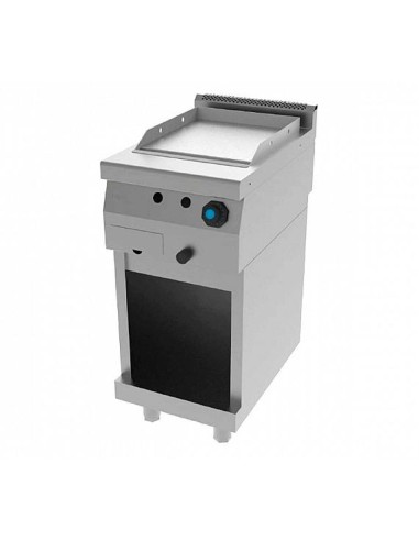 Dispone de quemadores de alto rendimiento con encendido piezoeléctrico, válvula de seguridad con termopar y mandos ergonómicos que facilitan un control preciso de la temperatura. Fabricado íntegramente en acero inoxidable AISI 304, garantiza máxima resistencia, higiene y una larga vida útil. La bandeja recogegrasas frontal extraíble permite una limpieza rápida y cómoda.