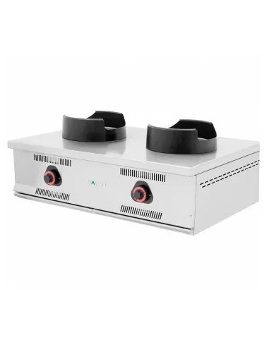 Su quemador atmosférico de alto rendimiento genera una llama vertical concentrada que transfiere el calor directamente al fondo del recipiente wok, logrando cocciones intensas, rápidas y homogéneas típicas de la cocina oriental.