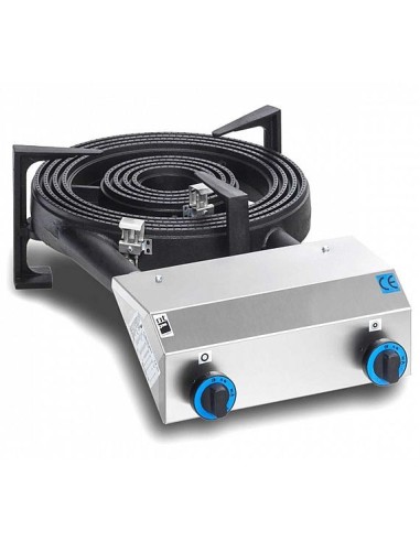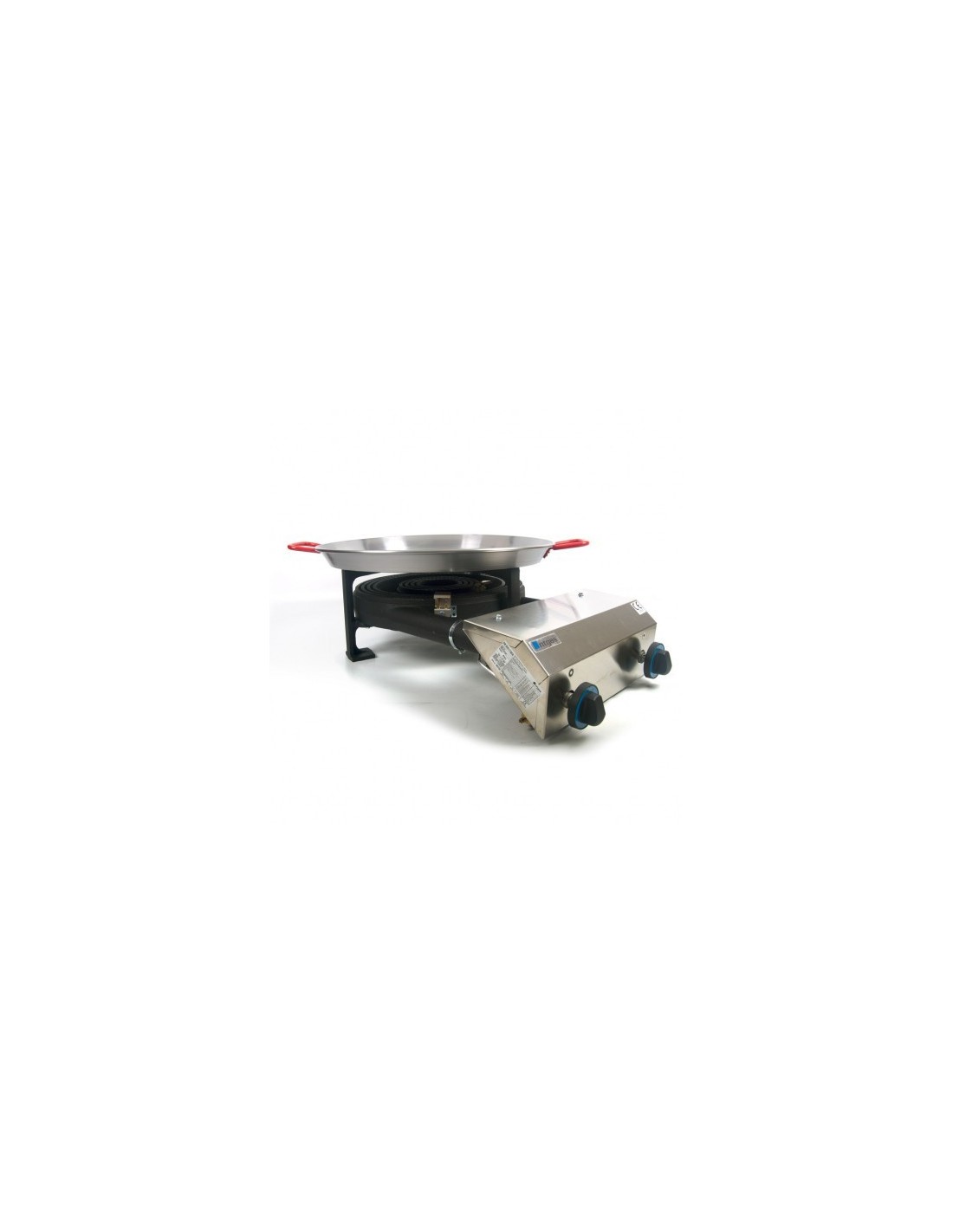 Paellero profesional de alta potencia equipado con dos fuegos, compatible con gas butano, propano o natural. Su estructura monobloque garantiza una construcción sólida y estanca, evitando cualquier tipo de fuga. Incorpora doble válvula de seguridad y termopar de control, ofreciendo un funcionamiento seguro y eficiente. Ideal para restaurantes, hoteles, bares, hospitales y servicios de catering.