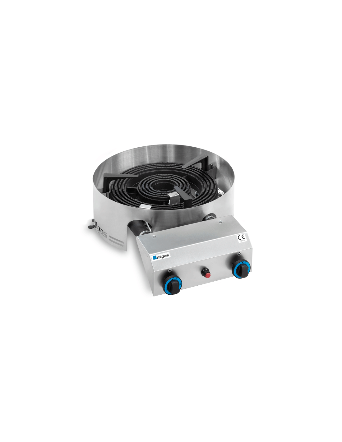 El paellero NTGAS P31+ es un quemador de sobremesa multigas, compatible con GLP y gas natural, equipado con dos fuegos de alta potencia. Diseñado para ofrecer un rendimiento excepcional en cocinas profesionales, garantiza una cocción rápida, homogénea y eficiente, ideal para hostelería, restauración y servicios de catering.