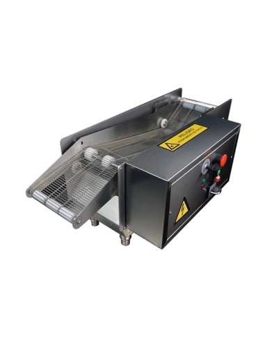 Equipada con cinta transportadora de velocidad regulable, la EC200 asegura una cobertura uniforme con pan rallado o harina, adaptándose a distintos tipos de alimentos como filetes, croquetas, pechugas o verduras. Su estructura en acero inoxidable facilita la limpieza, higiene y durabilidad, cumpliendo con las normativas alimentarias profesionales.