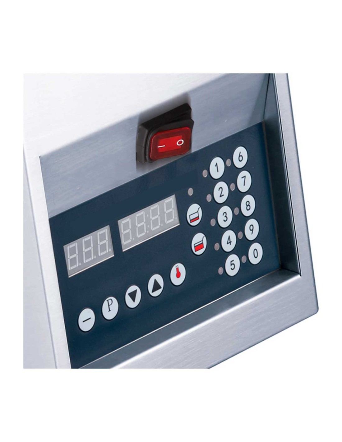 Panel de control digital programable con capacidad para 10 menús de fritura.