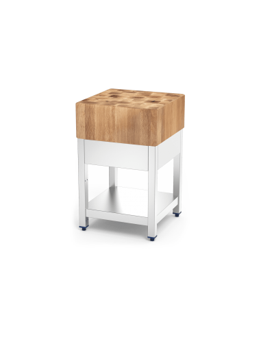 Tajo de troceo profesional fabricado en madera de encina con faldón. Ideal para carnicerías y cocinas industriales. Alta resistencia y durabilidad.