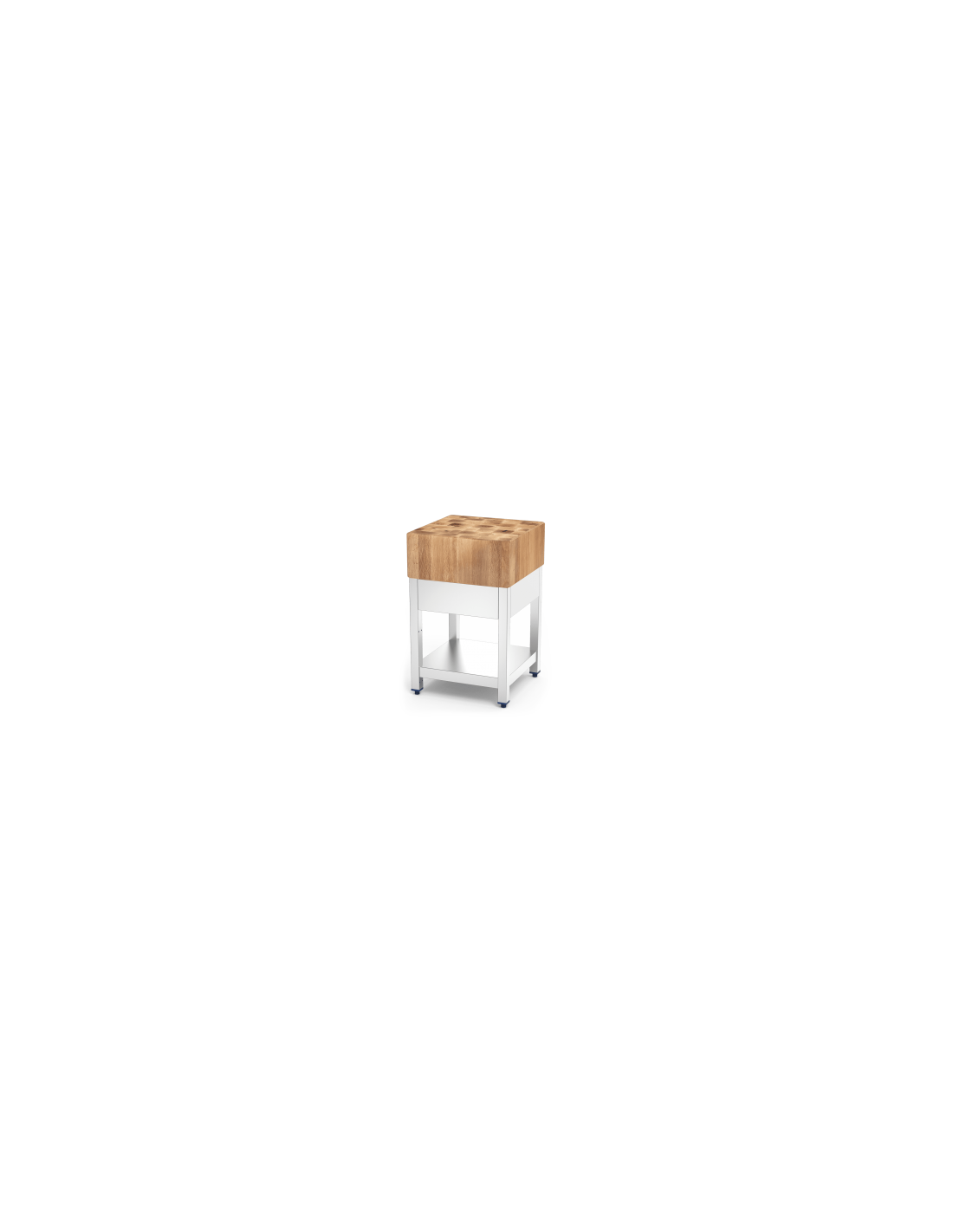 El tajo de troceo de madera de encina con faldón está diseñado para trabajos intensivos en carnicerías, obradores y cocinas profesionales. Su fabricación en madera maciza de encina garantiza una resistencia excepcional, soportando cortes y golpes continuos sin deteriorarse.Además, la madera de encina es naturalmente antibacteriana y fácil de mantener, lo que asegura una excelente higiene en entornos alimentarios exigentes.
