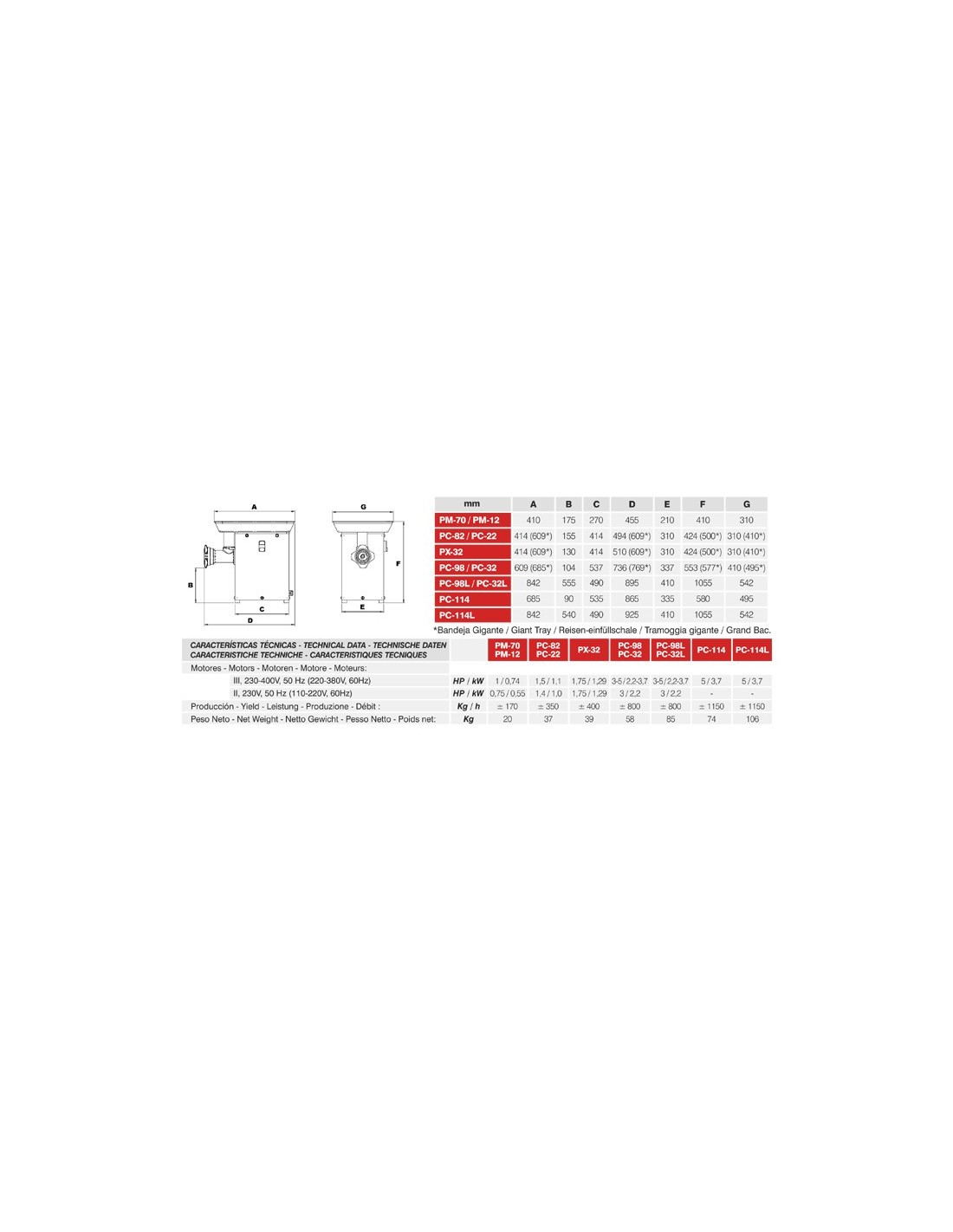 La Mainca PM-22 es una picadora profesional fabricada en acero inoxidable, pensada para entornos de hostelería, colectividades e industria alimentaria. Ofrece una producción aproximada de 350 kg/h y es altamente fiable para un uso intensivo.