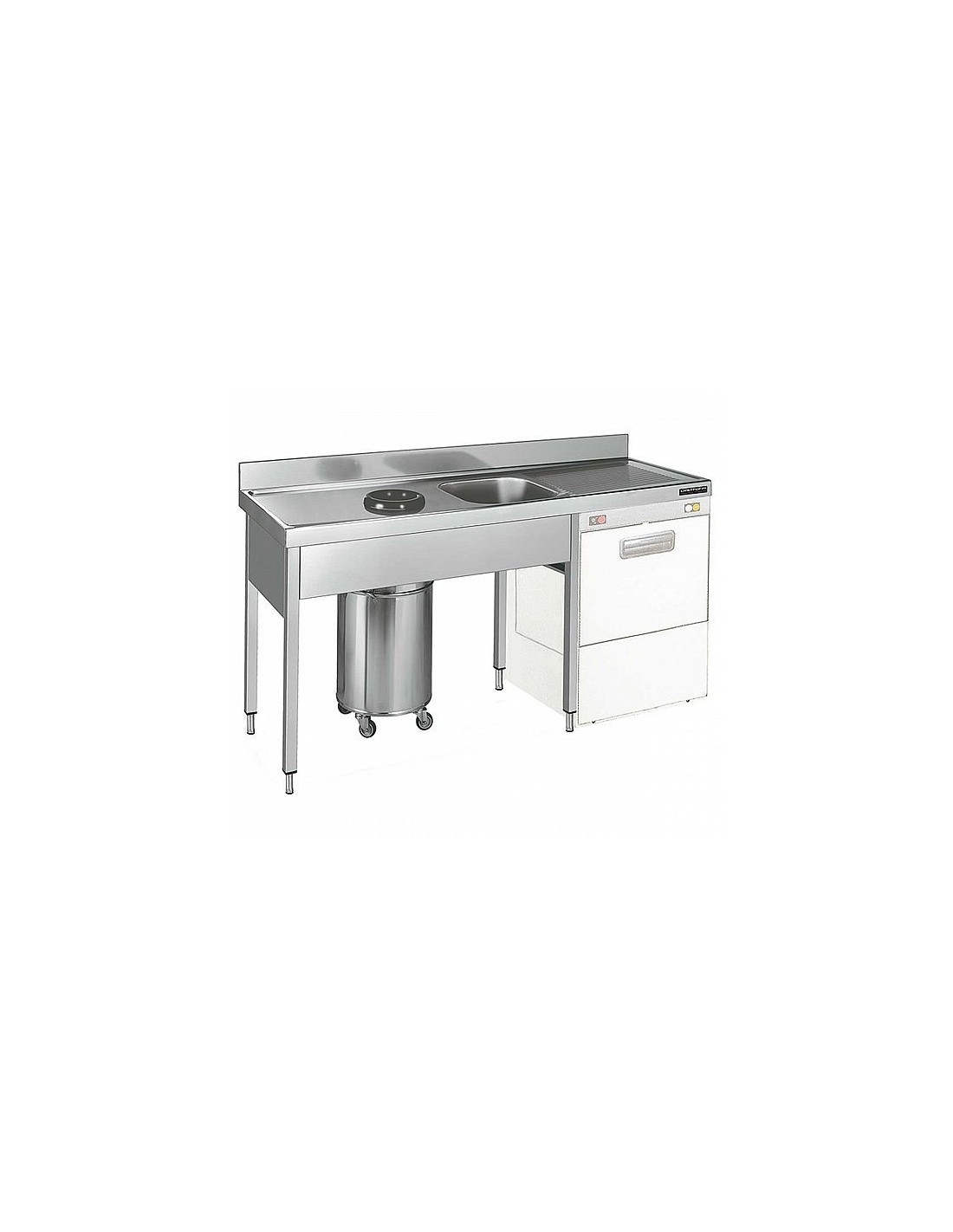 Este modelo incluye bastidor con espacio reservado para lavavajillas, y puede configurarse con escurridor a la derecha o a la izquierda, adaptándose a cualquier distribución de cocina industrial.