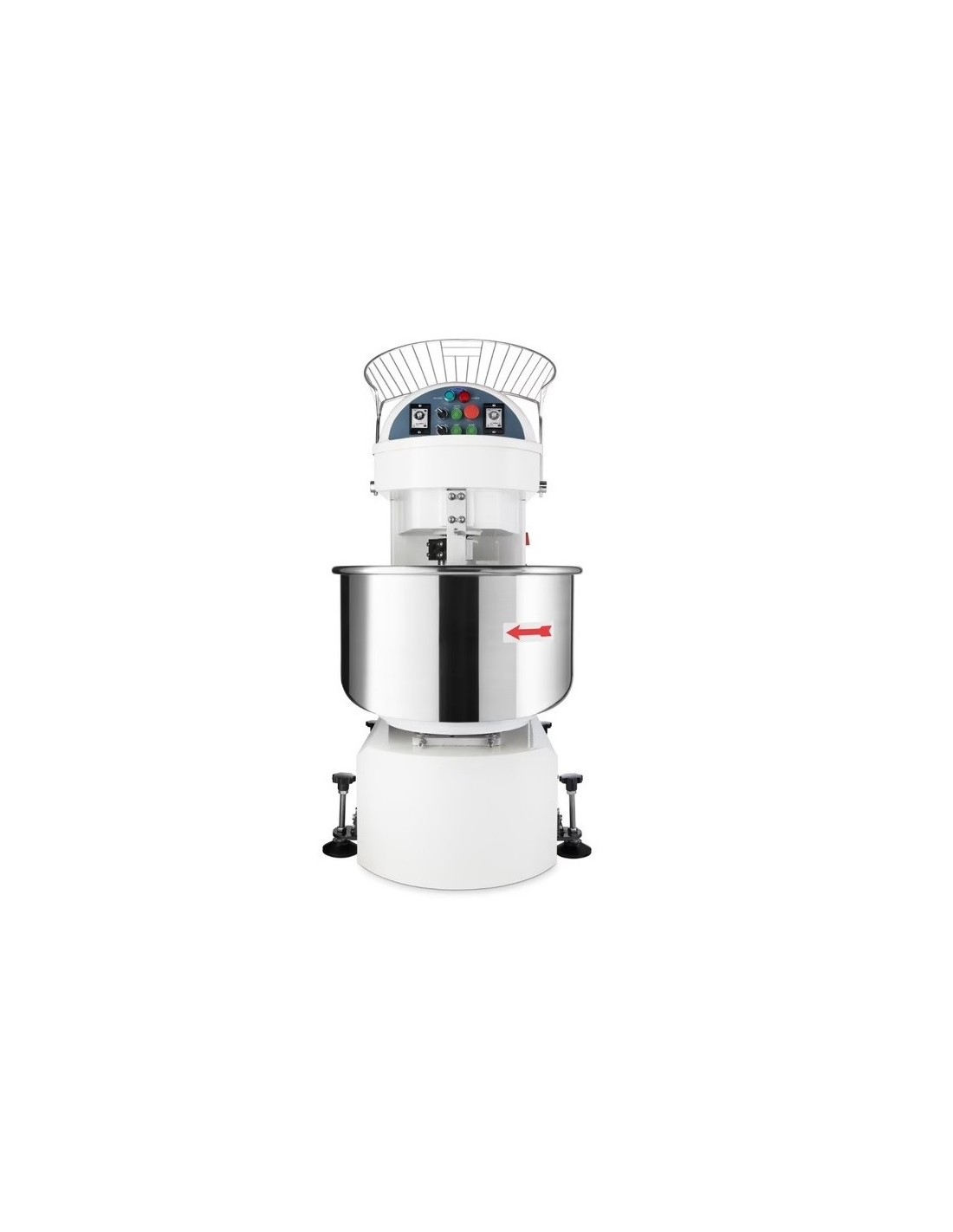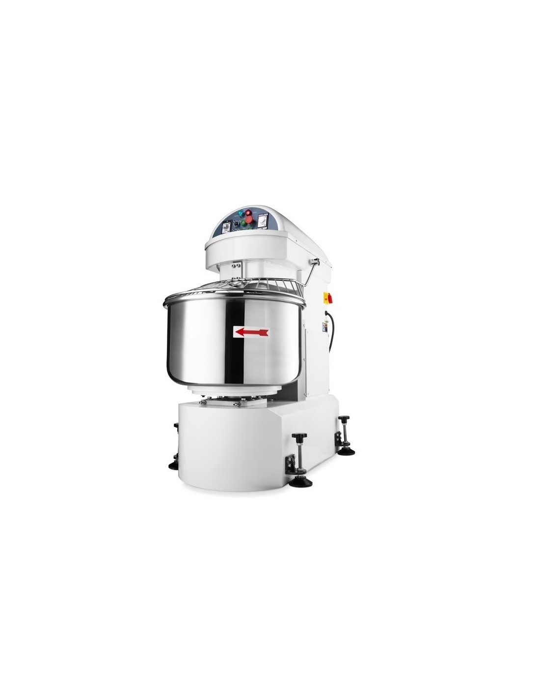 Su cuba de acero inoxidable permite trabajar hasta 120 kg de masa o 75 kg de harina, garantizando una mezcla homogénea gracias al movimiento sincronizado del gancho y la cuba giratoria.