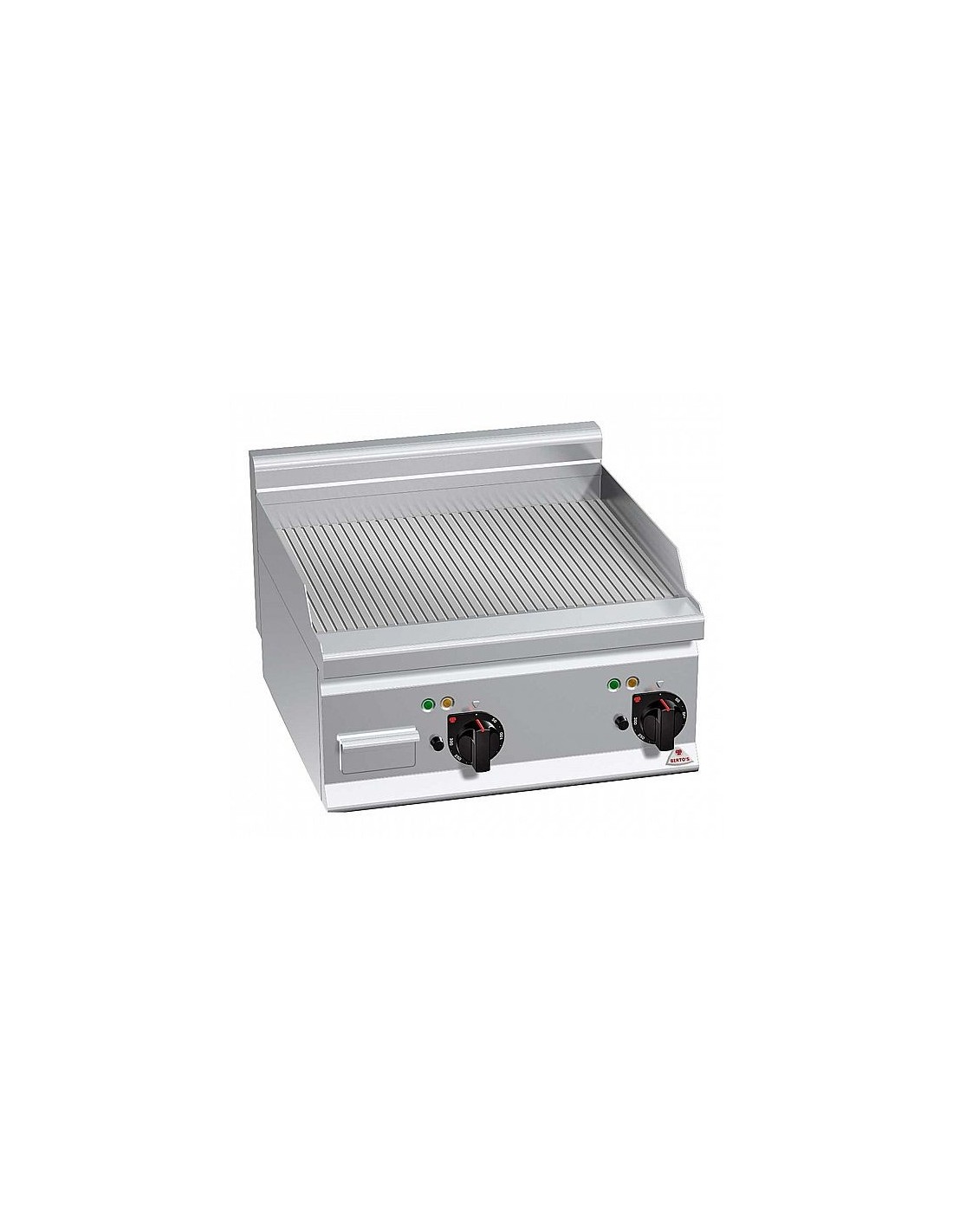 Fry Top eléctrico Bertos EFRBP Serie 600 con placa ranurada de acero rectificado de 10 mm y resistencias Incoloy. Potencia 4 kW o 8 kW, temperatura 50–270 °C y estructura inox AISI-304. Ideal para cocinas profesionales.