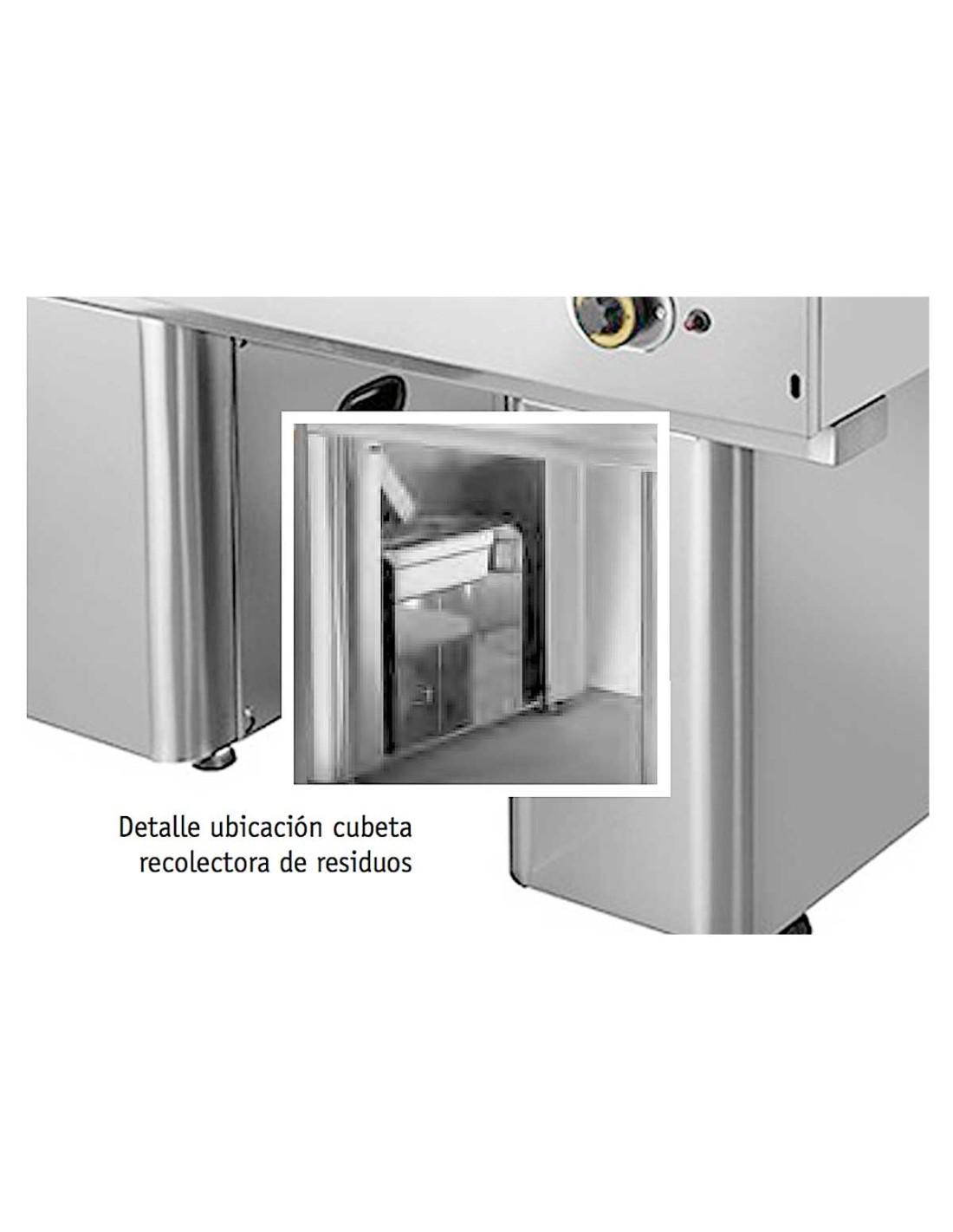 Cubetas recoge grasas GN 1/3 (10 mm de profundidad) integradas en cada soporte, con gran capacidad.