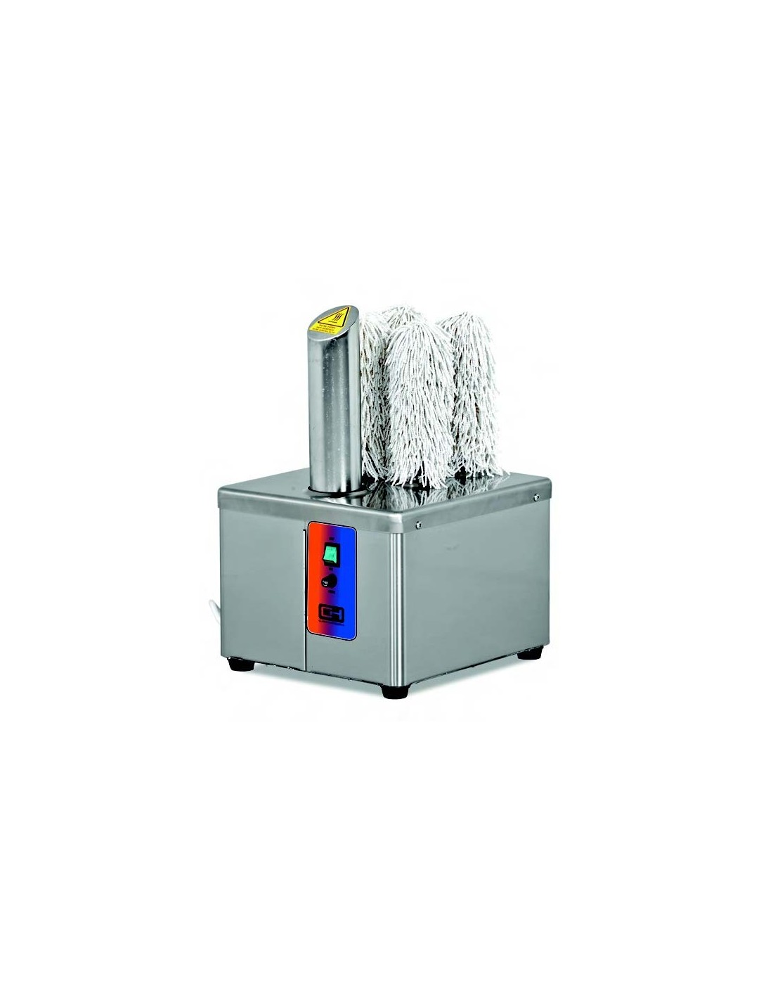 Abrillantadora de vasos y copas con rodillos de fibras naturales flexibles y absorbentes que se adaptan perfectamente a las distintas formas, perfectos para un abrillantado y secado profesional.