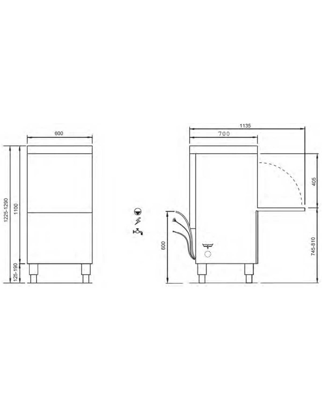 Incluye bomba de aclarado y dosificadores peristálticos de abrillantador y detergente.